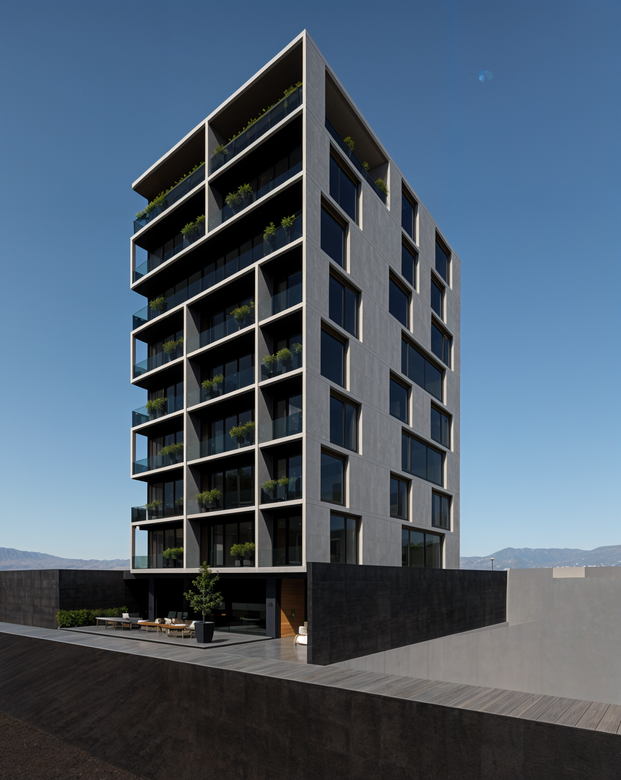 architectural watercolor rendering of a small contemporary research station perched on a rocky cliff structure made of warm wood black steel and glass precise and realistic architectural detailing cantilevered over stone terrain supported by steel beams surrounded by mountain pines and mist below rendered with crisp building geometry and realistic materials background and edges dissolve into loose watercolor washes and white paper edges not full bleed with soft unfinished fade around the image visible pencil and ink linework with light technical annotations artistic yet grounded balance of precision and painterly abstraction calm morning light concept architectural visualization style