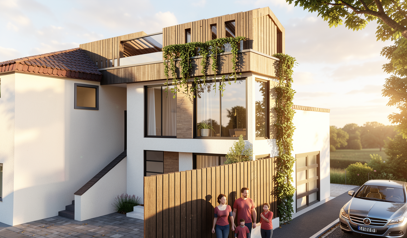 luxury render view with soft natural light cabinet laminate in greyish laminate column design and pantry backing in dark bronze titanium hairline finishing light up the standing lamp overall view not too blur tv feature wall s groove light need to be thin