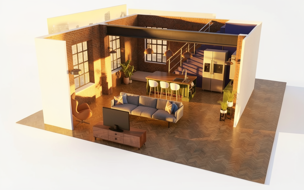 furnish the bar with bottles on the shelves themed decorations on the counter and put some stools at the bar respect the presence and size of the niches in the back bar the first on the left is a door the second is space for bottles