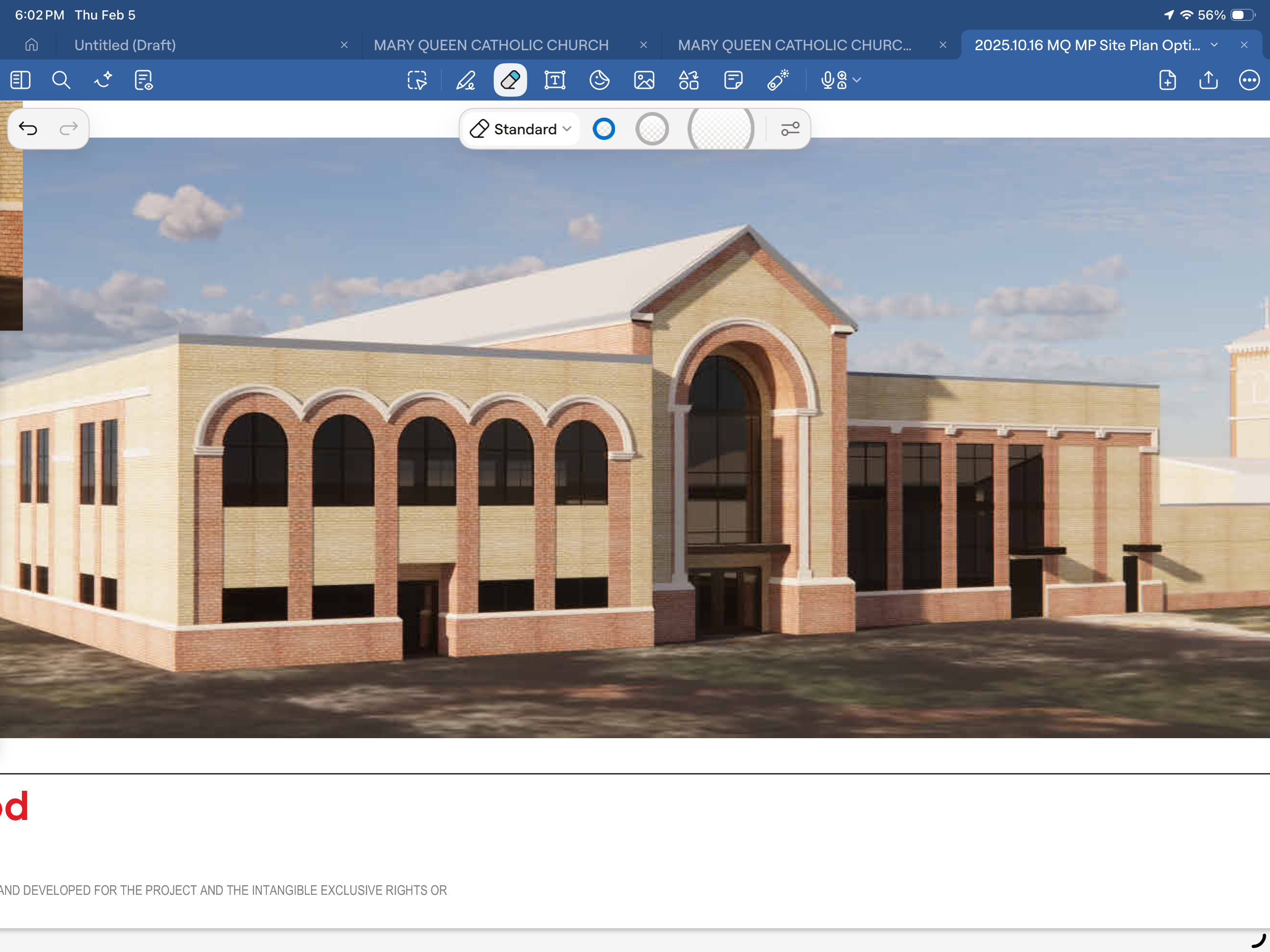 exterior shot render a front view of a brick school building with traditional modern design the bricks are in a warm terracotta color windows feature clear reflective glass with a slight blue tint the roof is a light gray tone the atmosphere is serene and professional under a clear blue sky add subtle shadows for depth and a well lit appearance