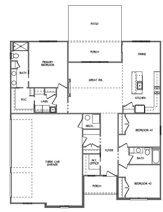convert this floor plan into a realistic isometric 3d view of a full house show the space from an elevated angle with furniture walls and details visible convert this floor plan into a realistic isometric 3d view show the space from a top down view with walls furniture and details visible carpet in all of the bedrooms and the bedroom closets wood flooring in the hallway bathrooms living room and kitchen light cabinetry and white countertops washer and dryer in the laundry room white windows and white trim garage patio and porch to be concrete add patio furniture to the porch and patio concrete floor in the garage with a car and suv inside bench and hooks in the mudroom only on one wall living room has fireplace add rugs in the living room office and dining room use the same furniture as shows on the plan do not change the orientation of the floorplan