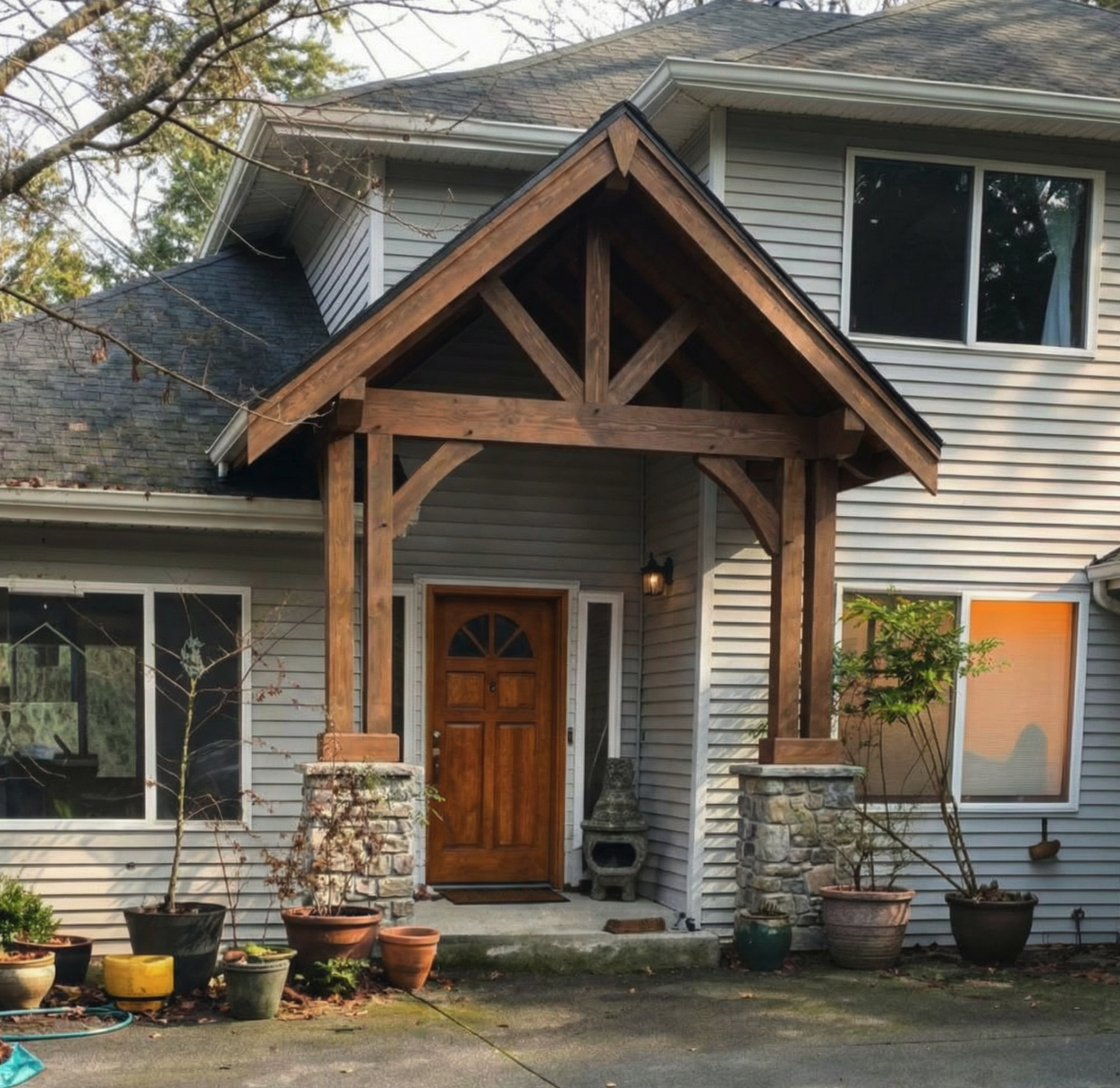 add trapezoid window above front door to match gable roof pitch