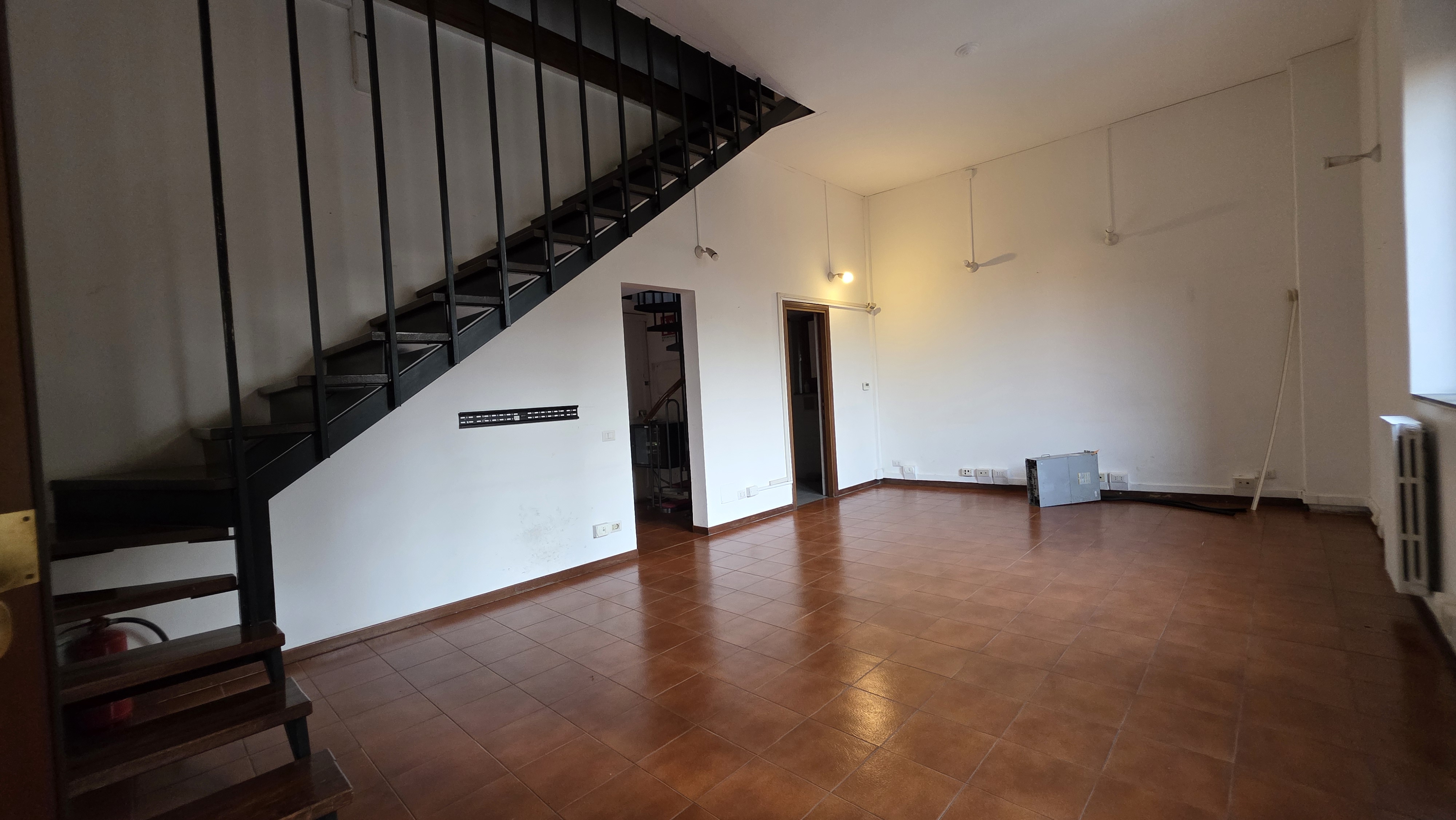 questo un duplex di 90mq su 2 livelli si trova al centro storico di roma a trastevere ha 3 camere 2 bagni salone grande e cucina iniziamo con il salone ecco le immagini creami uno stile industriale leggero combinato con l antichit ed il fatto di essere in centro di roma puoi cambiare sia il pavimento che i dettagli decorativi e soprattutto l illuminazione la scala rimane cosi come idea carina pensa anche ad una sorta di sala cinema sul muro bianco in fondo quello tutto bianco senza porte che ne dici di un telo per proiettore a tutta altezza che pu fungere da sala cinema