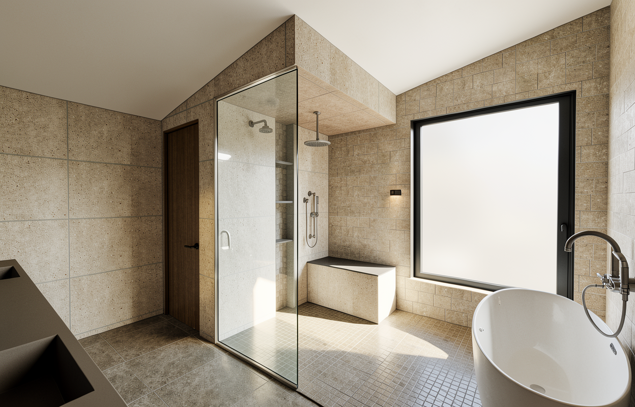 photorealistic enhancement of the provided architectural render preserve the exact architecture layout materials furniture placement and fixtures from the original image with no redesign or modifications the purpose is only to improve realism and lighting quality render as high end interior photography using a full frame camera with a 24 35mm architectural lens balanced exposure realistic dynamic range subtle depth of field and natural color grading the image should look like a professionally photographed luxury interior rather than a computer render