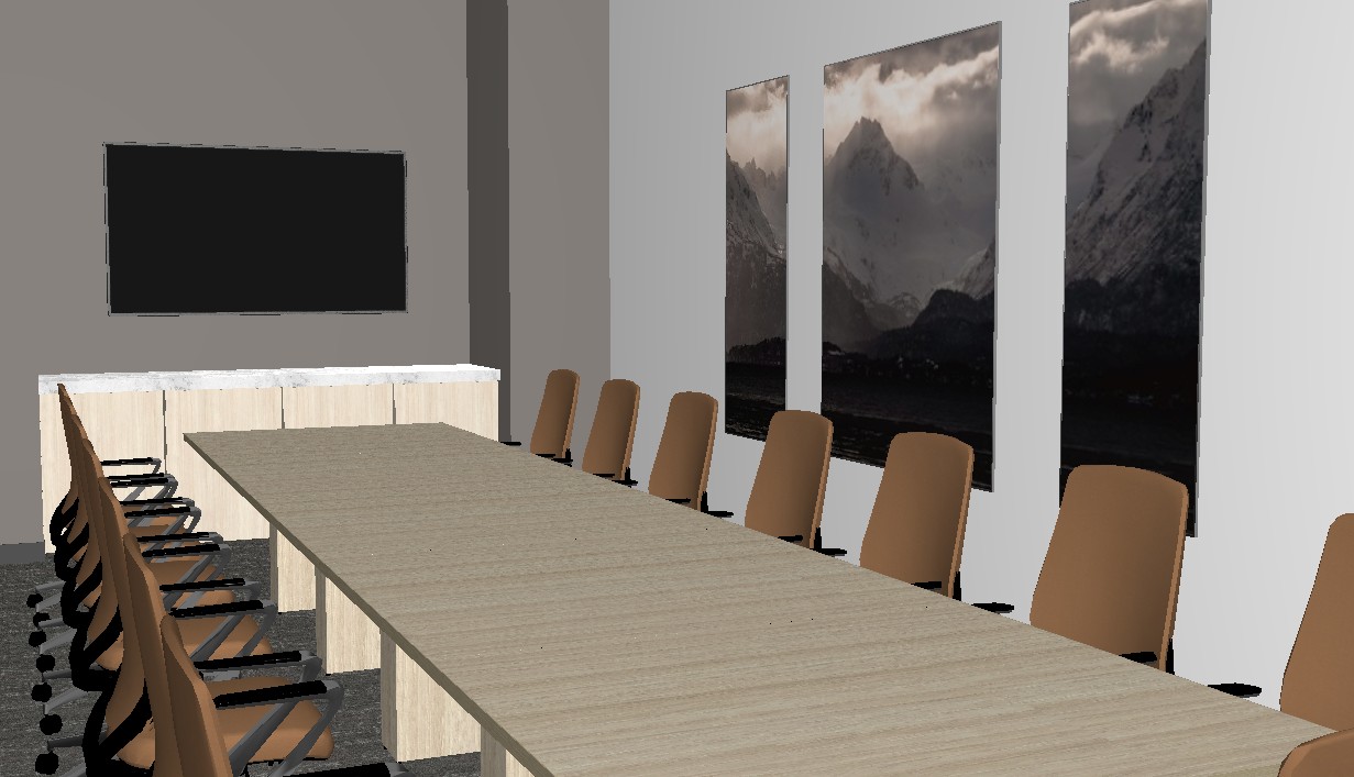 render image keeping all structure and finishes the same but make photo realistic make ceiling an office 2x4 grid with lights