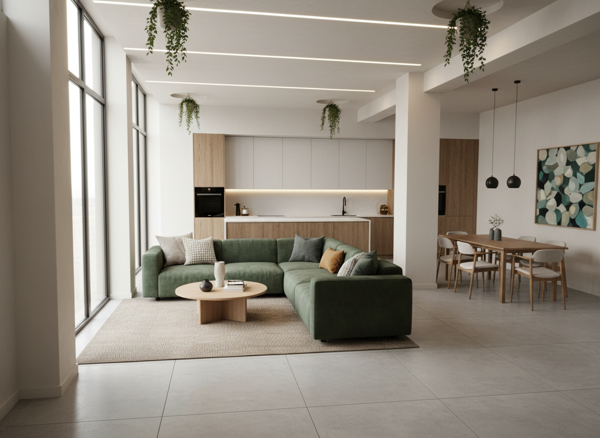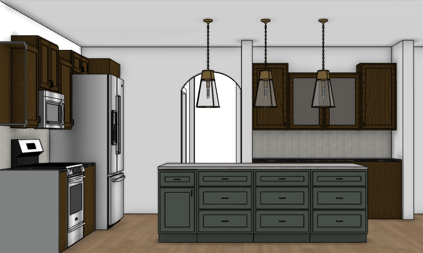 create a photorealistic render from the model add recessed lighting to the ceiling keep the scale size and placement of what s shown