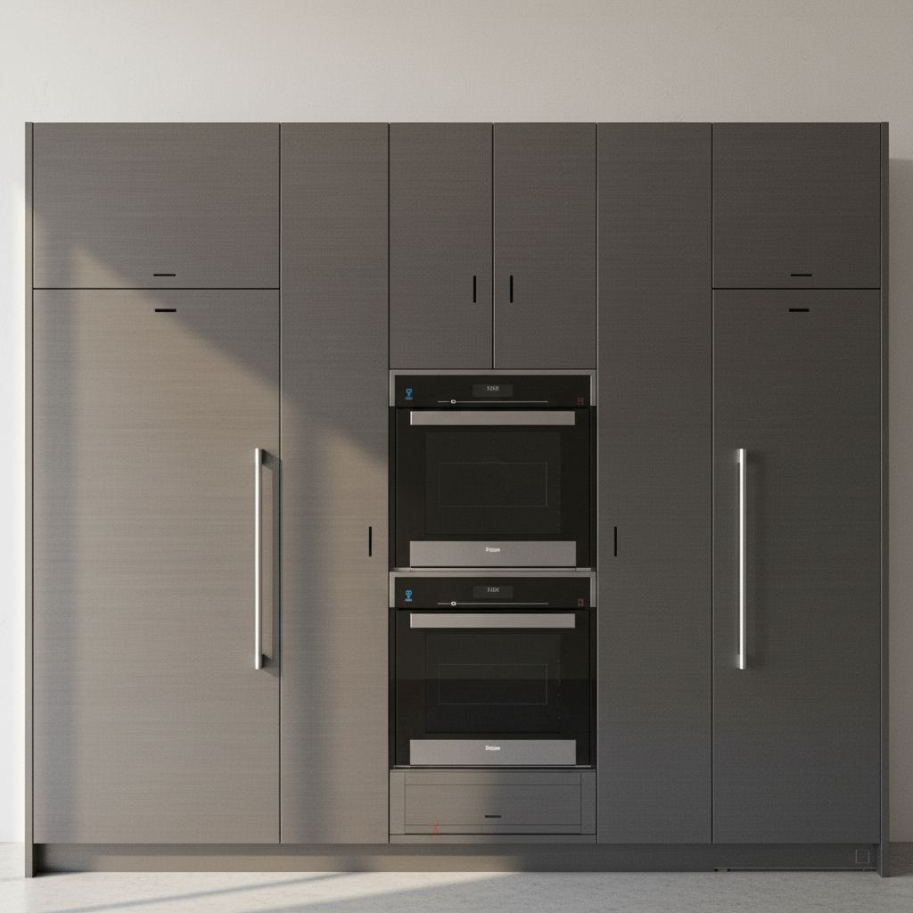 back view of a clean modern architectural exterior rendered in cinematic vibrant sunset lighting rustic architectural style vertical warm cedar siding beautifully lush green manicured landscape around structure with hedges and gardens black standing seam metal roof prominent cinematic dense forest surrounding the house with streaks of light shining through the tall trees high fidelity photorealistic visualization crisp shadow falloff refined facade geometry soft atmospheric depth premium architectural photography mood ultra clean composition and materials dark trim around windows warm glow through the windows of the house