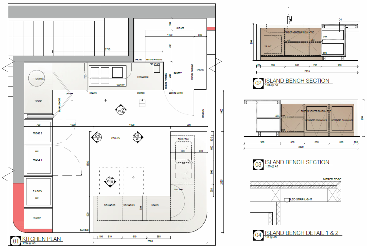 this is a kitchen floor plan and a tv joinery on the right hand side you can also see the island elevations