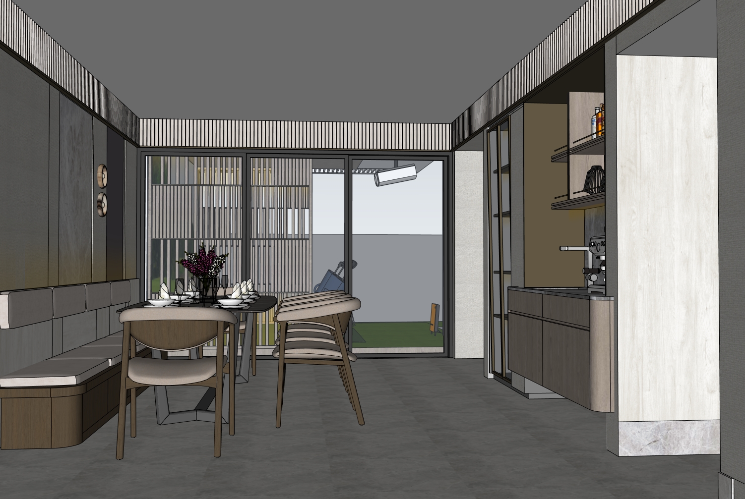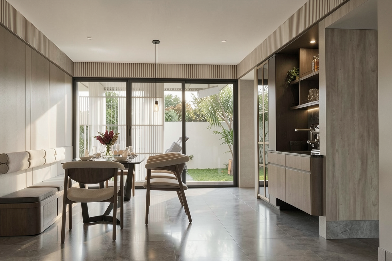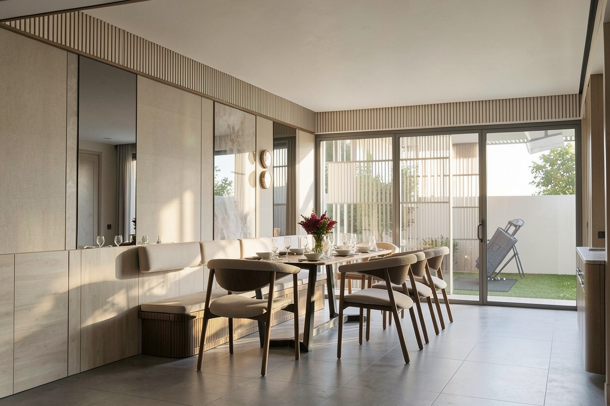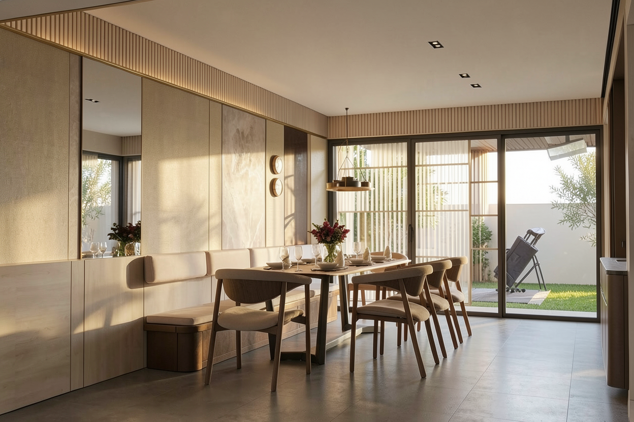 behind the dining with mirror and no need pendant light