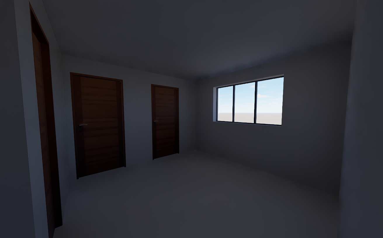 mkae this room a modern bedroom with nice neutral colours and elements of led lighting warm light with a nice curtian at the window and natural light