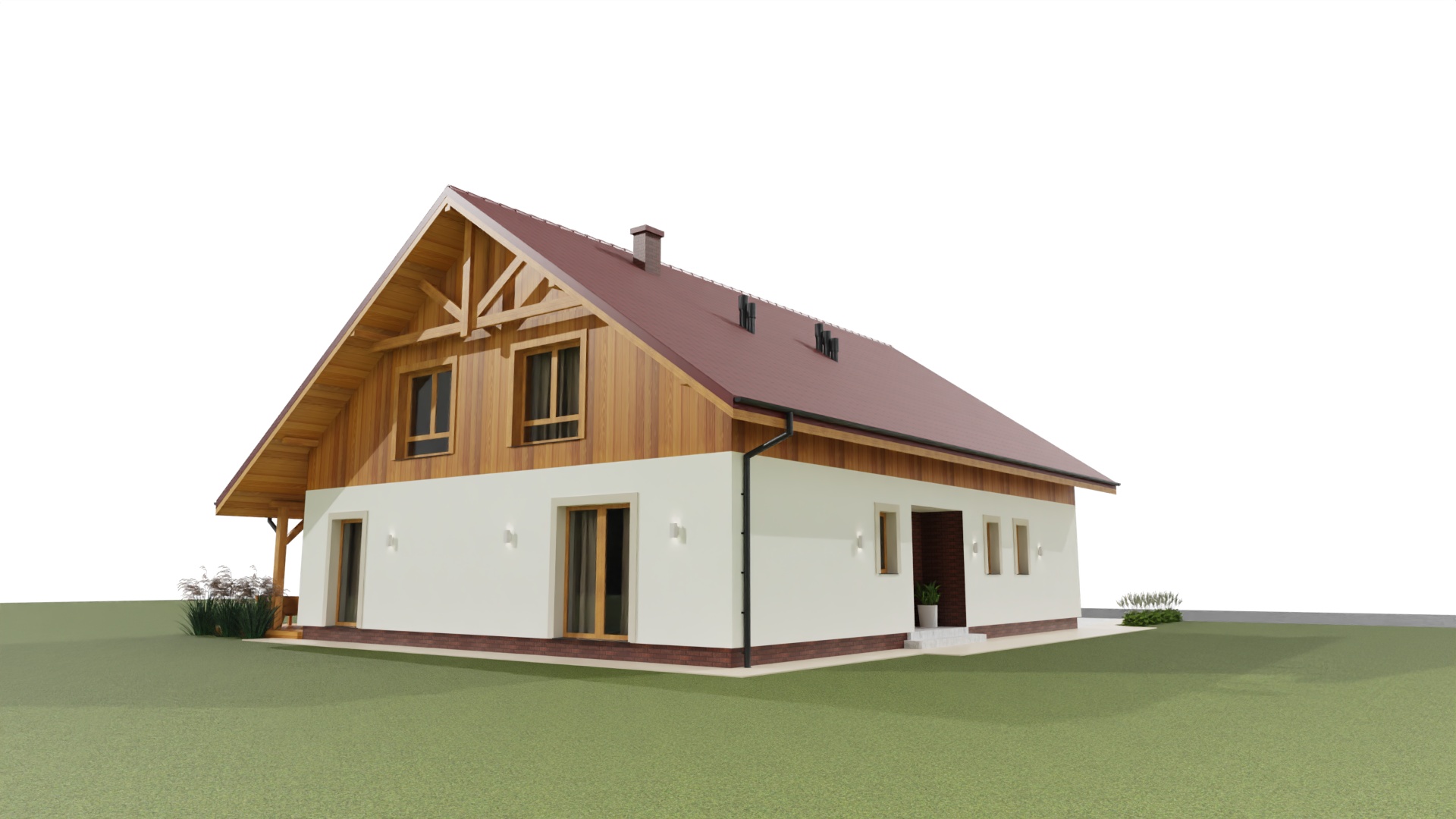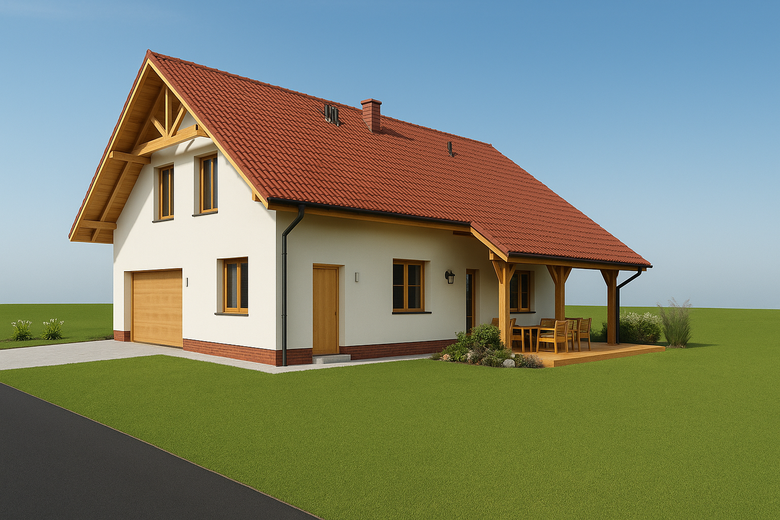 transform this picture into a realistic exterior visualization with natural light keep the camera angle keep the original materials and textures make it an ultradetailed view with global illumination and photo based rendering materials change background add contrast and sunlight keep colour of wood and brick