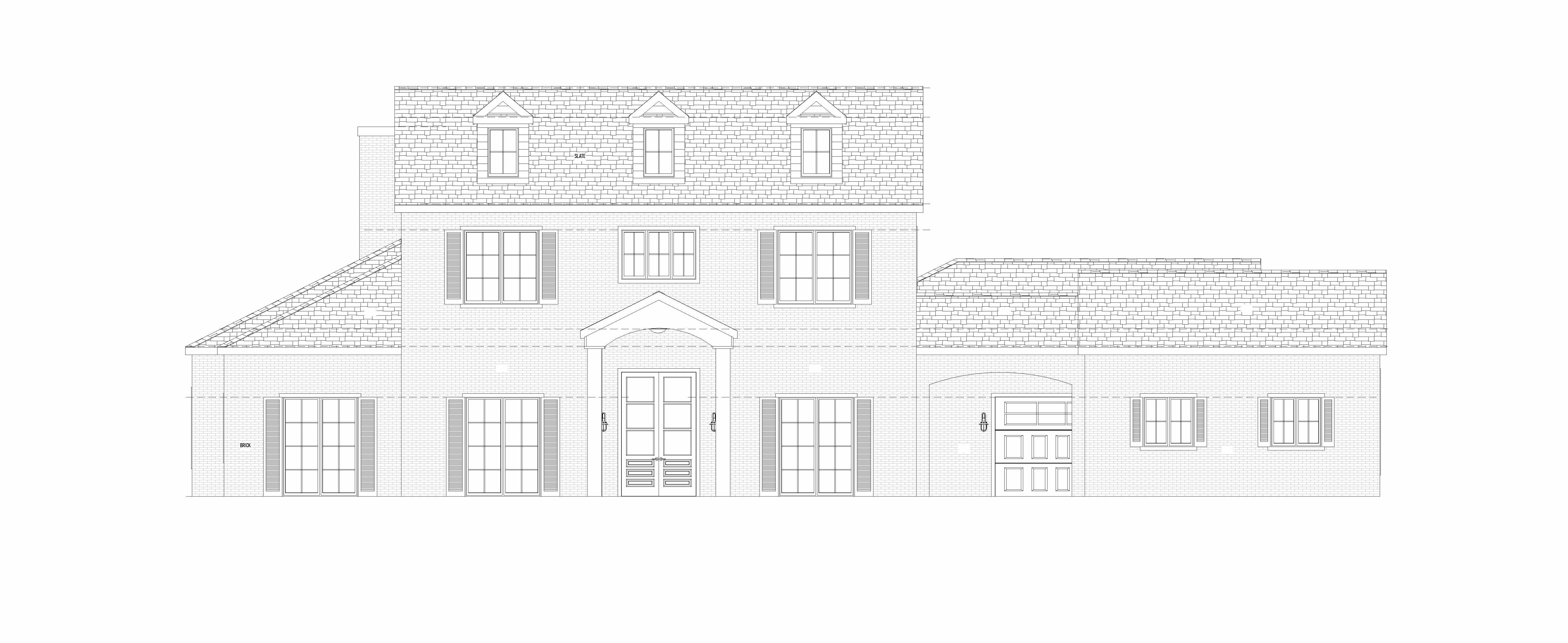 colonial revival exterior shot the exterior is painted white brick the shutters are a light grey the roof is a dark grey slate architecture
