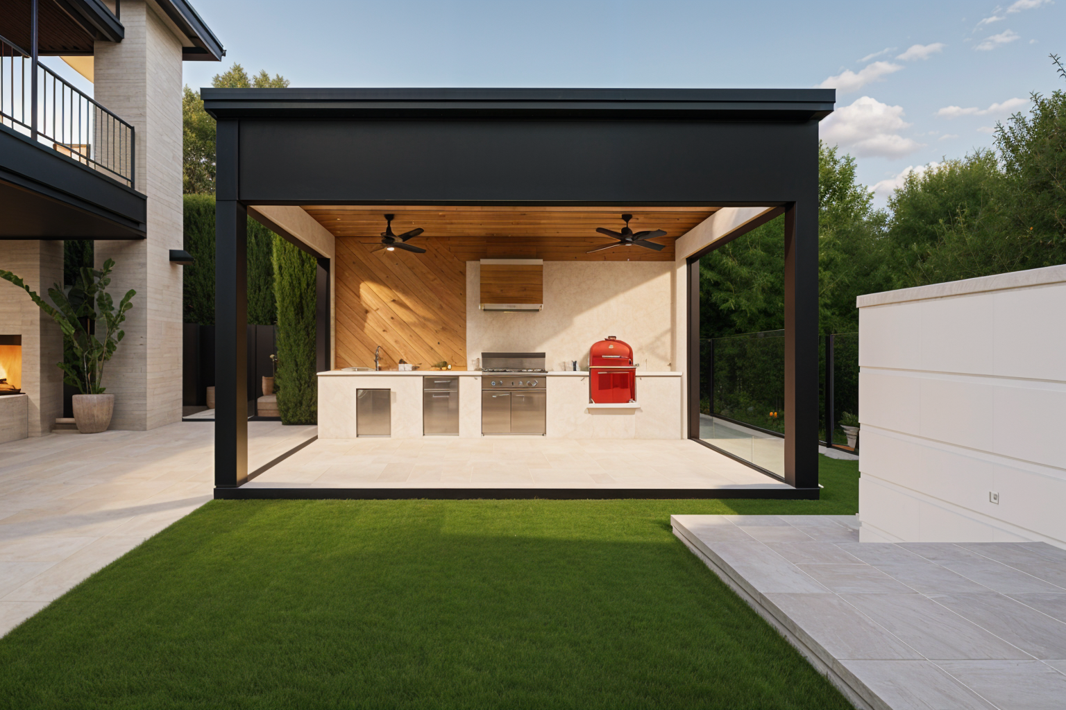 this is a funeral home in greenville sc the walls should be reddish brown brick the roof should be black shingles the columns should also be brick the trim should be painted white the front of the building should have landscaping found in south carolina there should be minimal paving for parking with access to the front carport render this in a realistic style keep general massing orientation the same