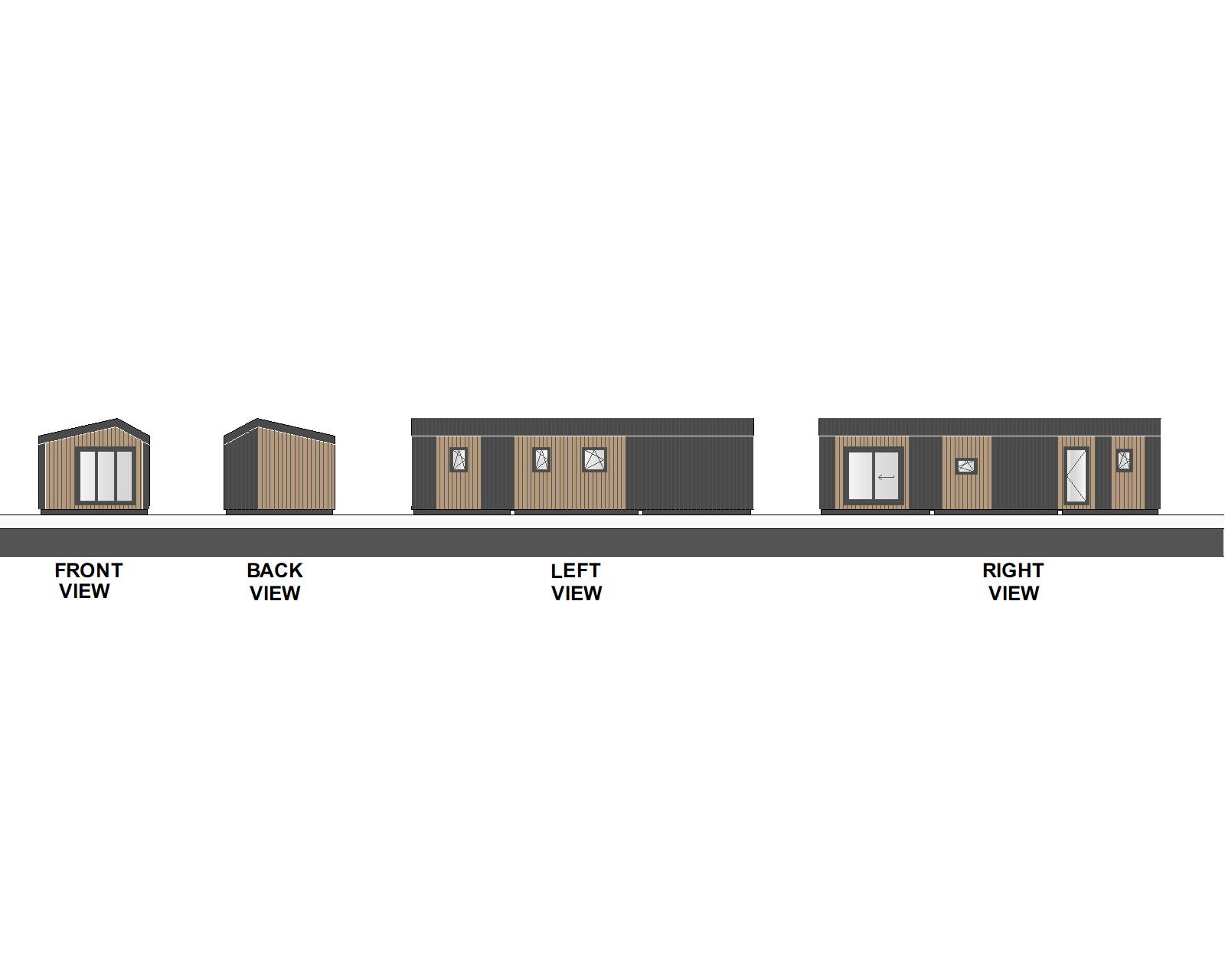ultra realistic modular house single module exact size 12x4 meters asymmetric gable roof with offset ridge roof slopes exactly 13 degrees and 29 degrees do not change roof geometry roof material trapezoidal metal sheet visible trapezoid profile facade made of metal panels with clear segmentation every 30 cm scale must be accurate facade color and material exactly as in reference image doors and windows placement exactly as reference wall mounted outdoor lamp next to entrance door identical in shape and style to rendl lizzi ii wall lamp black up down light eye level camera architectural visualization photorealistic pbr materials global illumination minimal surroundings architecture
