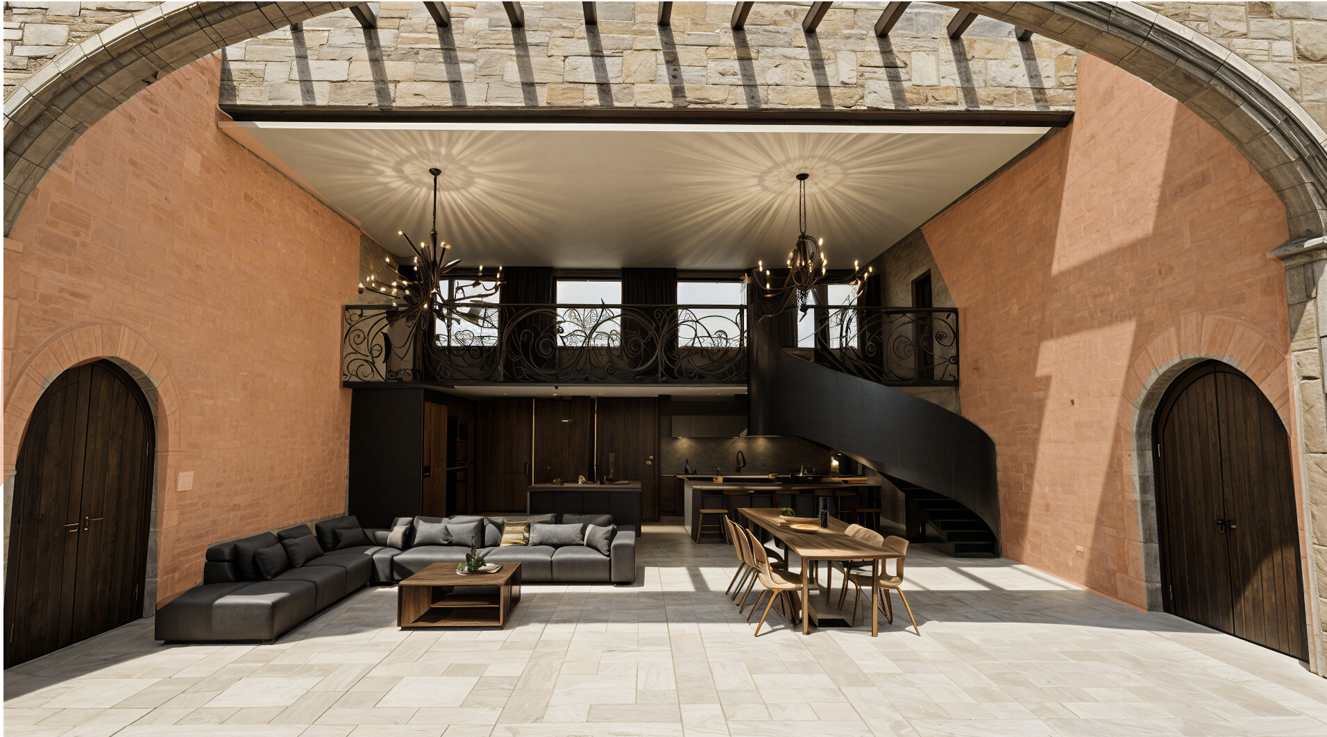 orange walls that are pointed out shoud be jus beige texturre concrete