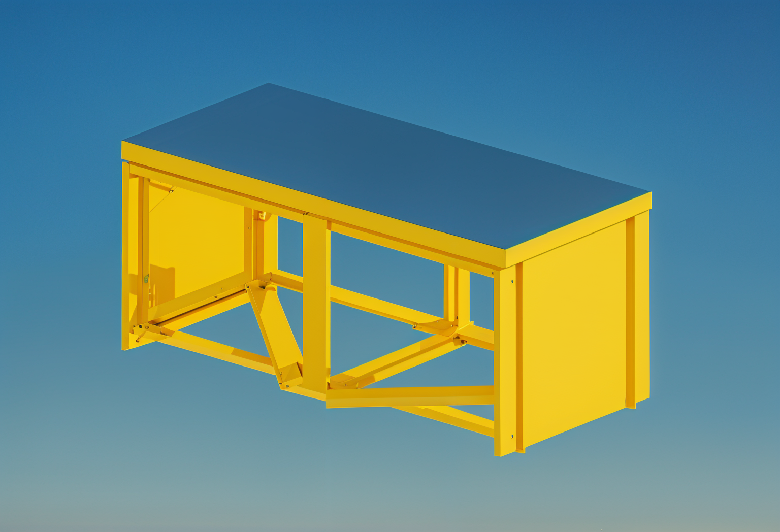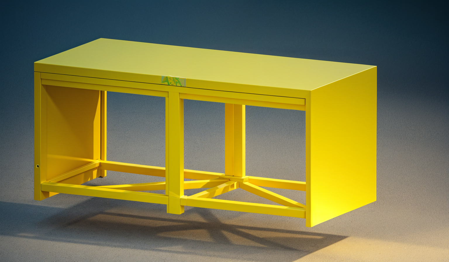 render this table the legs should be yellow the top should be osb make the background plane architecture