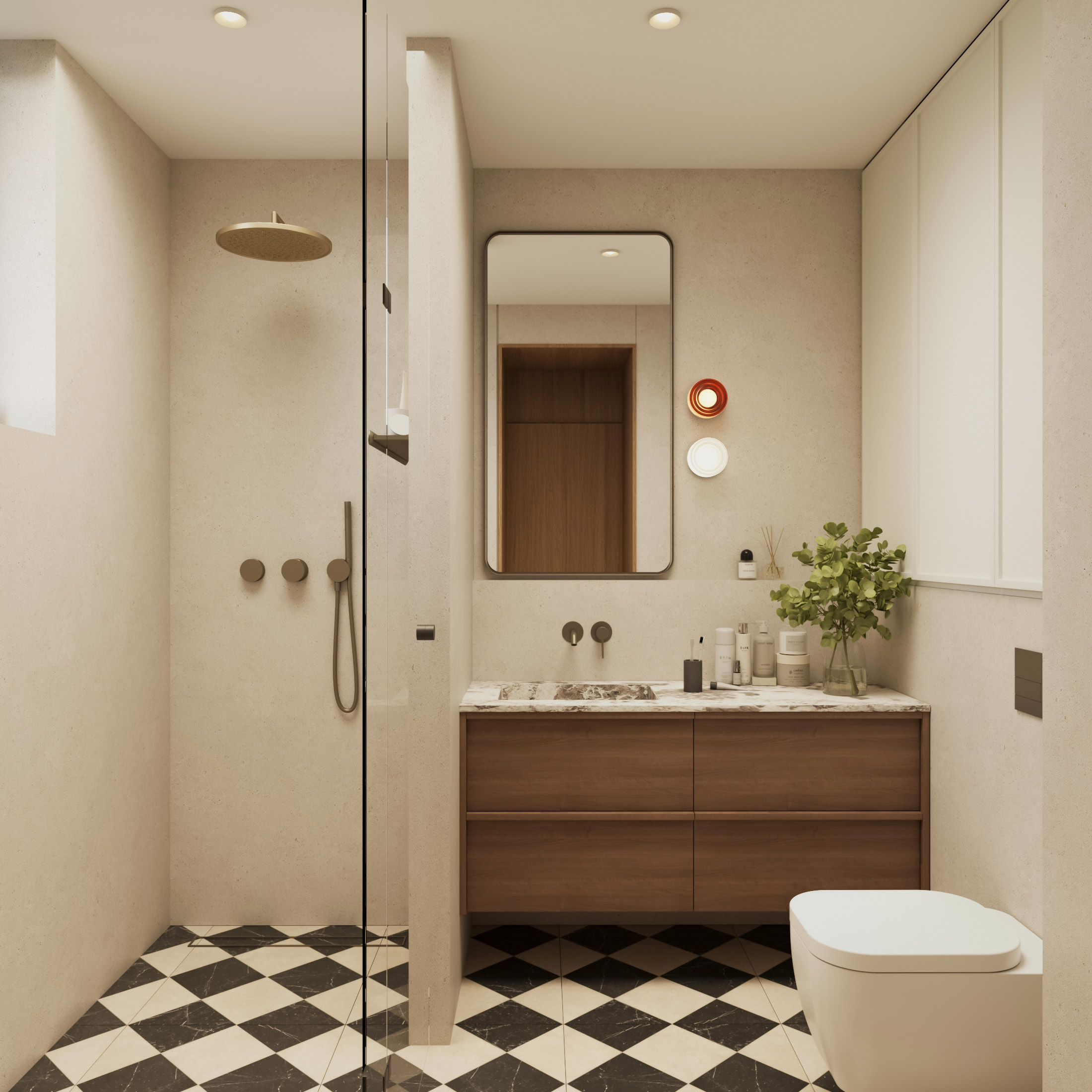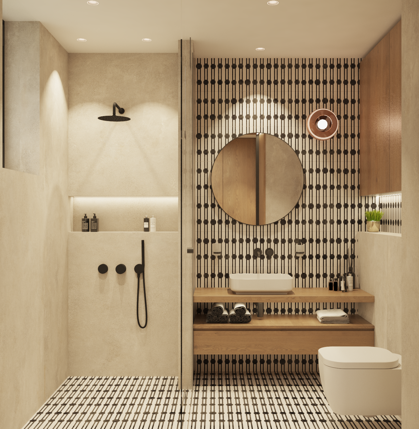 exterior shot add horizontal niche in the shower zone don t change nothing else