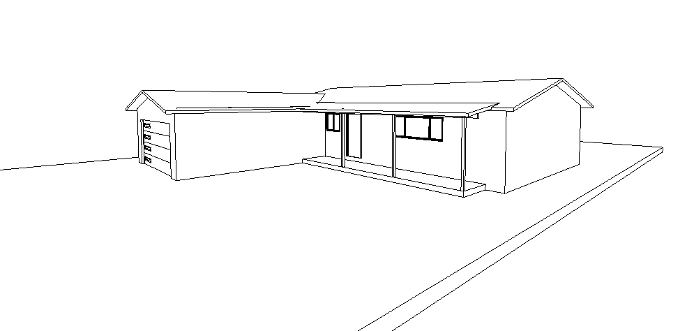 creamy white stucco dark bronze garage door with four windows on the left side horizontal cedar siding on the entire wall with the front door dark bronze window frames brown asphalt shingles front lawn with large tree in the middle surrounded by succulents colorful sky