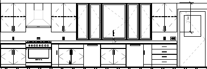 cream cabinets and windows to the ceiling walnut island light oak floors quartzite countertops entryway to living room on wall adjacent to the stove door is a door to exterior deck