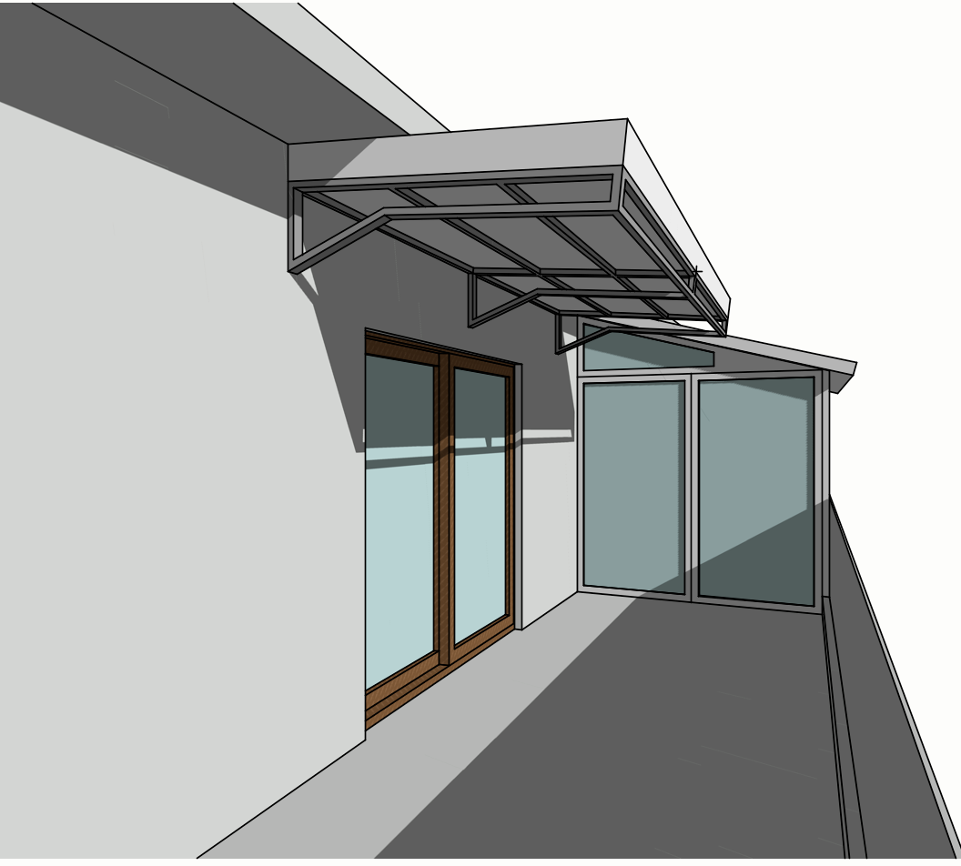 keep geometry a roof in white aluminium panel with metal grey beams in a veranda of a building in the eight floor in greece