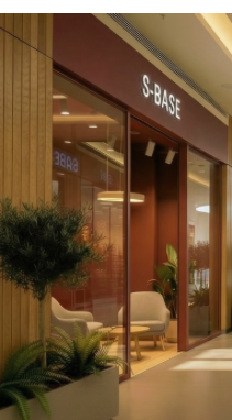 reference image https www archsynth com dashboard create a straight on frontal view of the shop visible in the image show the storefront centered and clearly visible with a clear view into the interior design the interior as a warm stylish chill area with a modern youthful atmosphere use contemporary materials soft warm lighting clean lines and comfortable seating preserve the original architectural style proportions and storefront structure keep the scene realistic and inviting