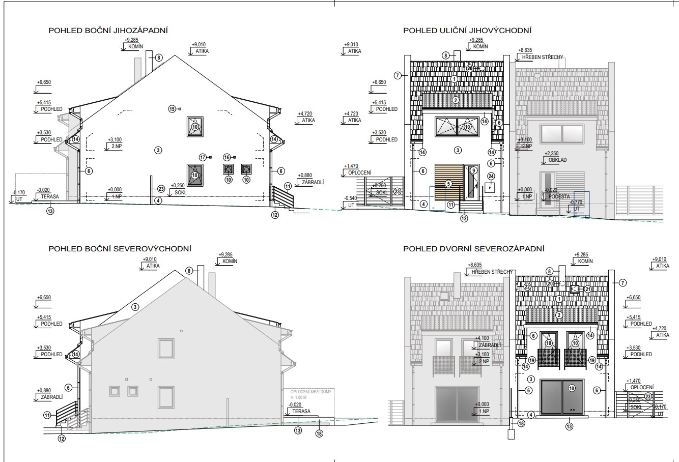 create modern white house with blaack roof perspective view on picture are 2 same houses architecture