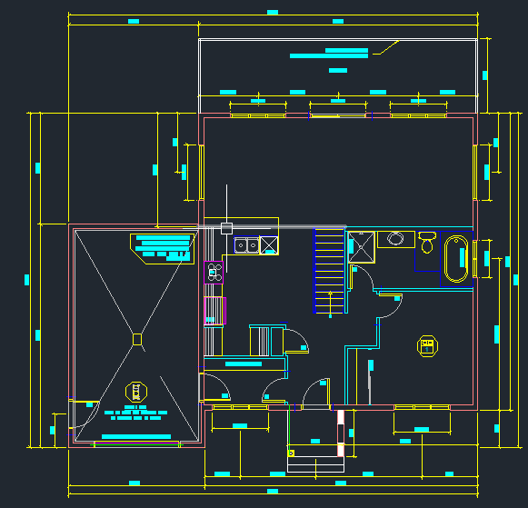 create a beautifully rendered architectural blueprint of a house the blueprint features intricate lines and details highlighted by a soft neon glow use a deep charcoal background to create contrast emphasize the walls and structural elements with a bright cyan blue highlight doors and fixtures with a soft magenta while the furniture is accented with a gentle lavender use golden yellow for dimensions and boundaries to add warmth the atmosphere is futuristic and sleek with a touch of elegance and precision evoking a sense of modern innovation