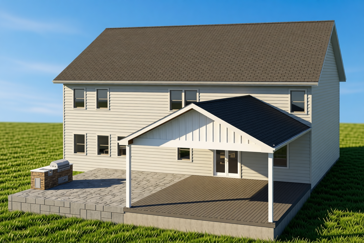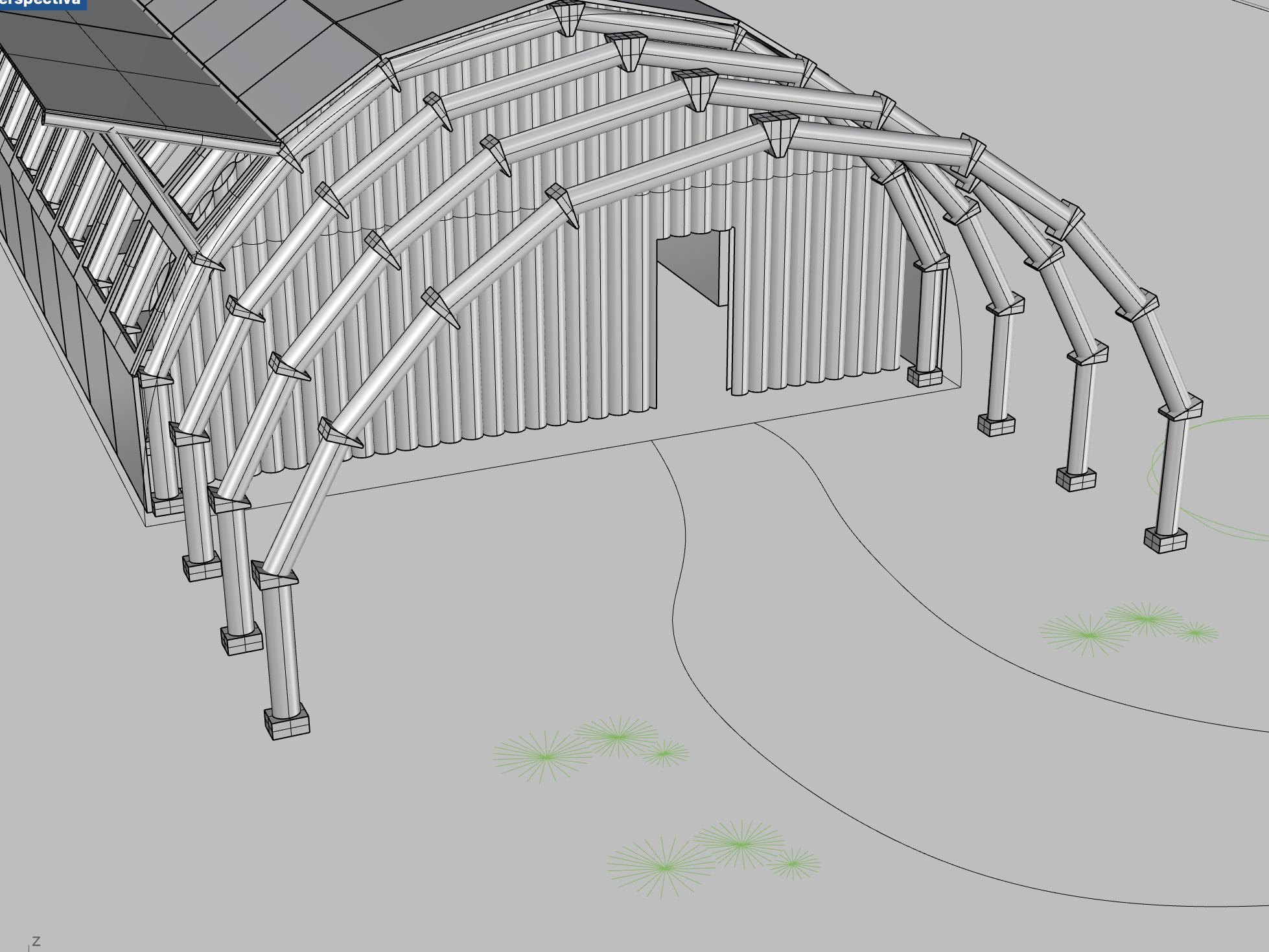 watercolor render of wooden structure realistic vegetation floor