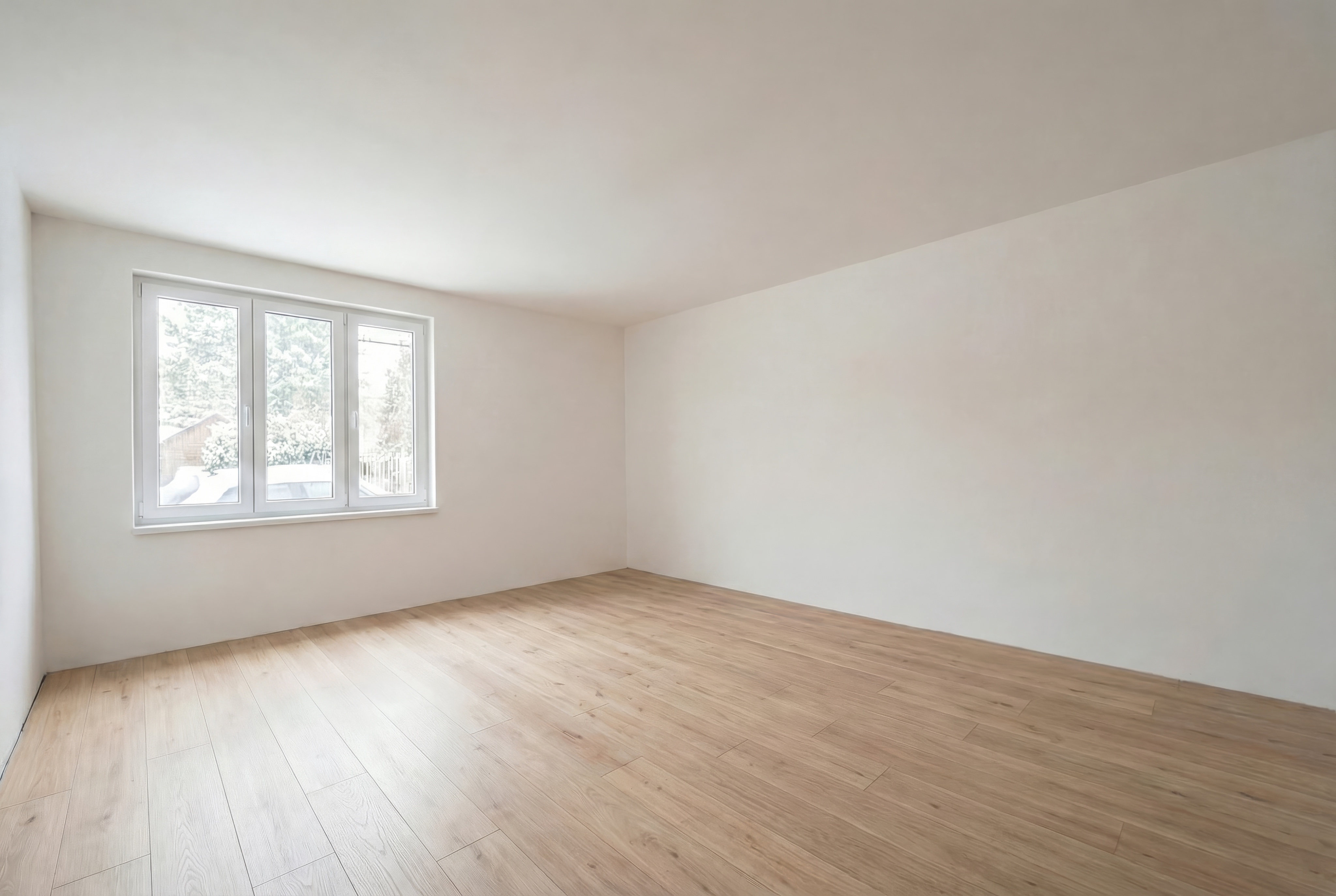 modern living room add tv on the right wall and sofo logicaly due to tv ppacement add curtains on window