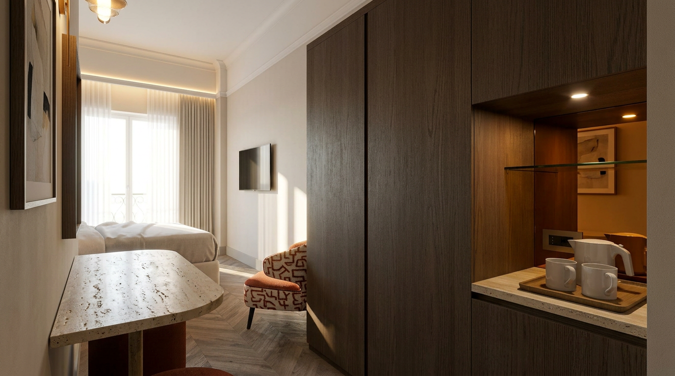 utility room doors to be in porcelain and set the table with plates and wine glasses render with lighting and realism