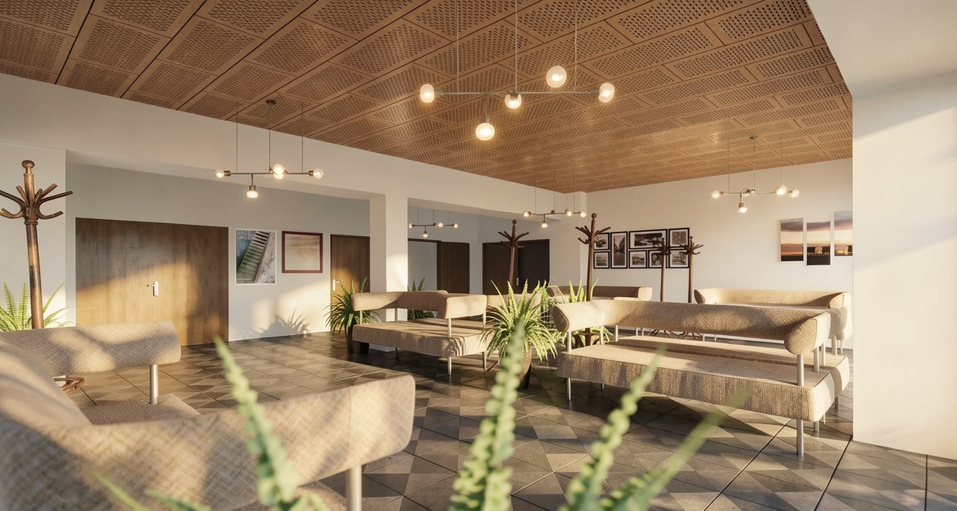 zaha hadid detail shot a modern living room with a minimalist aesthetic the central focus is a curved cream colored sofa with stylish gray and dark brown cushions adjacent to it two sleek nesting coffee tables in a soft light gray shade a large window bench with a comfortable gray cushion seat framed by a rich dark wood finish adding warmth and contrast the floor features a muted blue carpet the walls are painted in a clean crisp white with one accent wall in a soft gray natural light streams through a large opening creating a serene and inviting atmosphere architecture