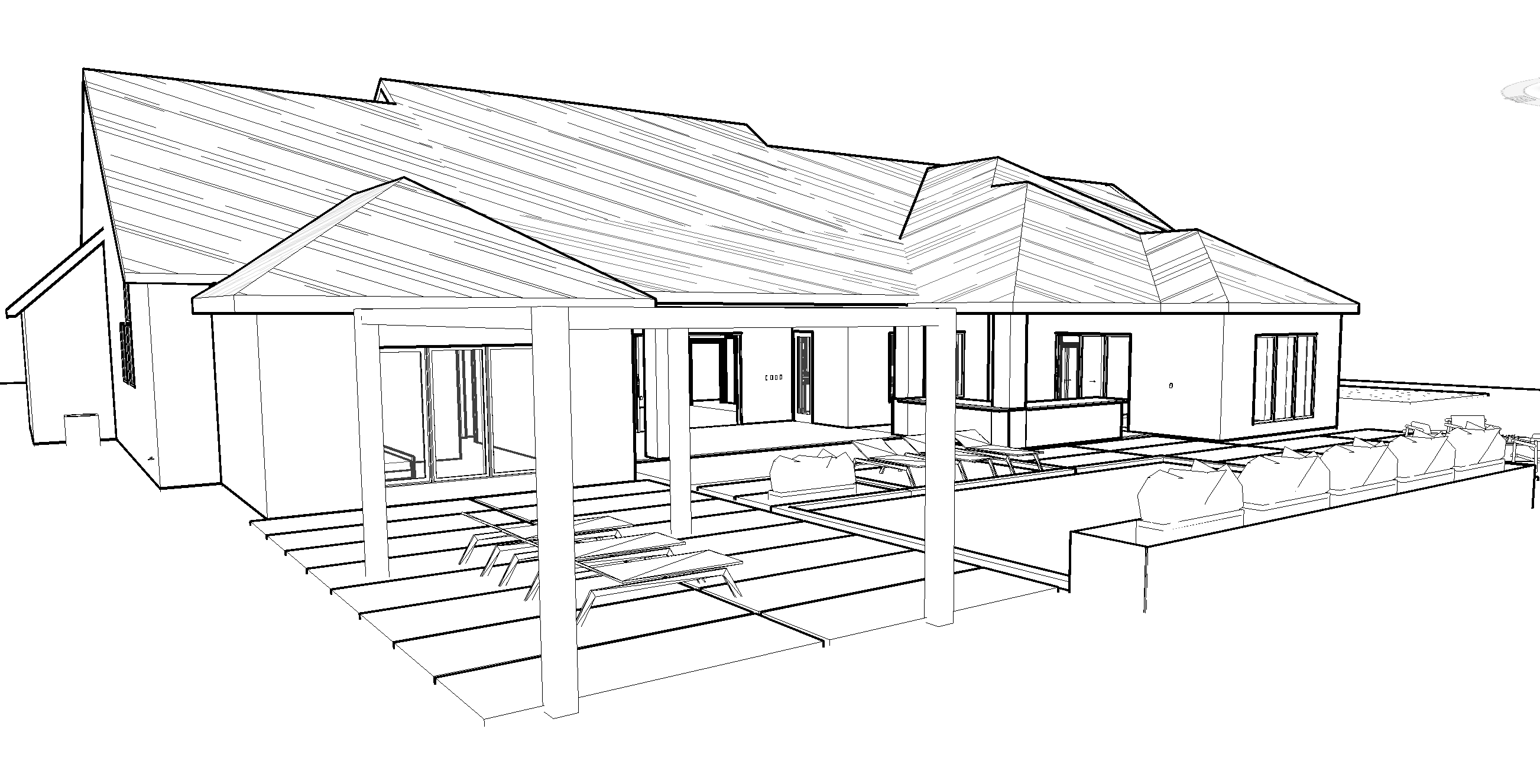render a photorealistic 3d perspective of this house in a flower mound tx white brick black tile roof black windows keep model geometry the same windows doors roof walls garage door pavement driveway make a lush vegetation that looks native to north texas do not change the view only enhance the current materials and make the landscape nicer vegetation detailed textures in the wood siding and glass reflections and a vibrant clear sky with light atmospheric depth render in hyper realistic architectural visualization quality 8k resolution