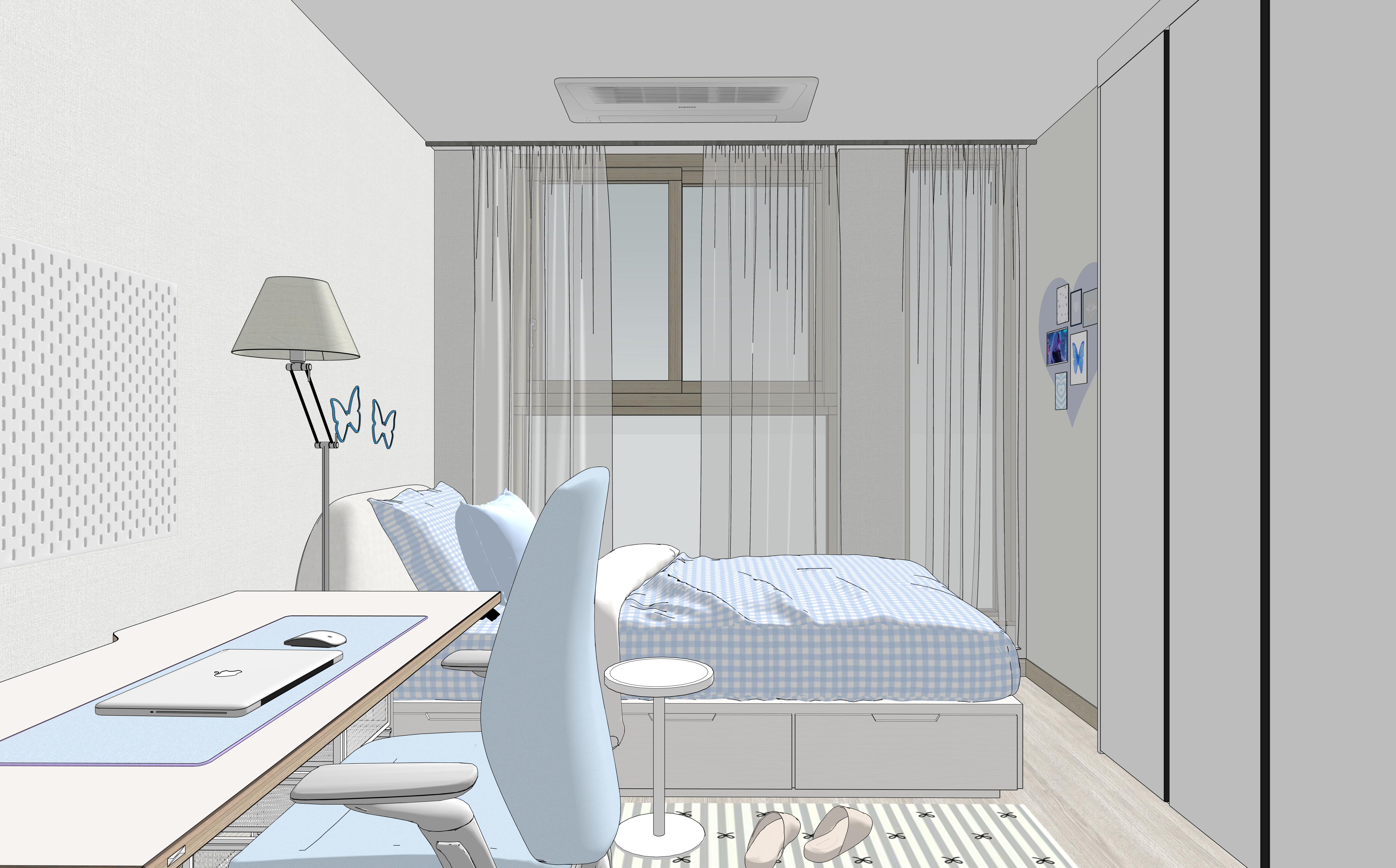 the photo attached in the reference is of the actual space and above i added additional furniture please show the actual space with the furniture i am adding
