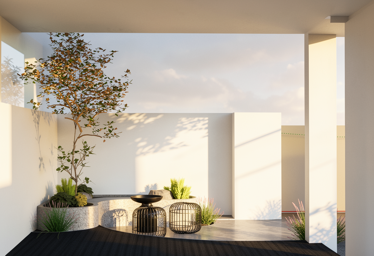 shorten up the landscaping on the right so that you can access the double doors extend the landscaping away from the building remove the landing in front of the middle door add horizontal parking space stripes at the edge of the landscaping