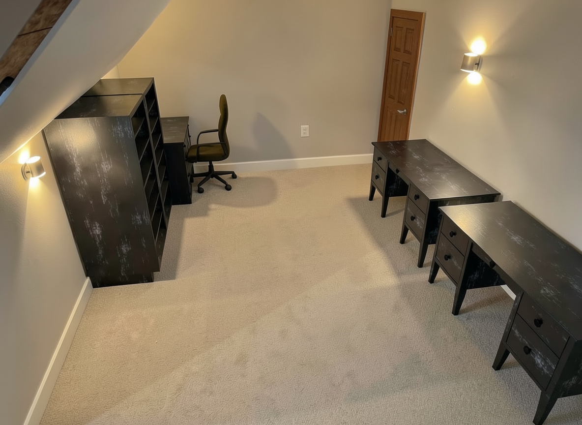 do not change the image add some realistic grass and some realistic trees and show warm sunlight the building has metal corrugated panels and stone