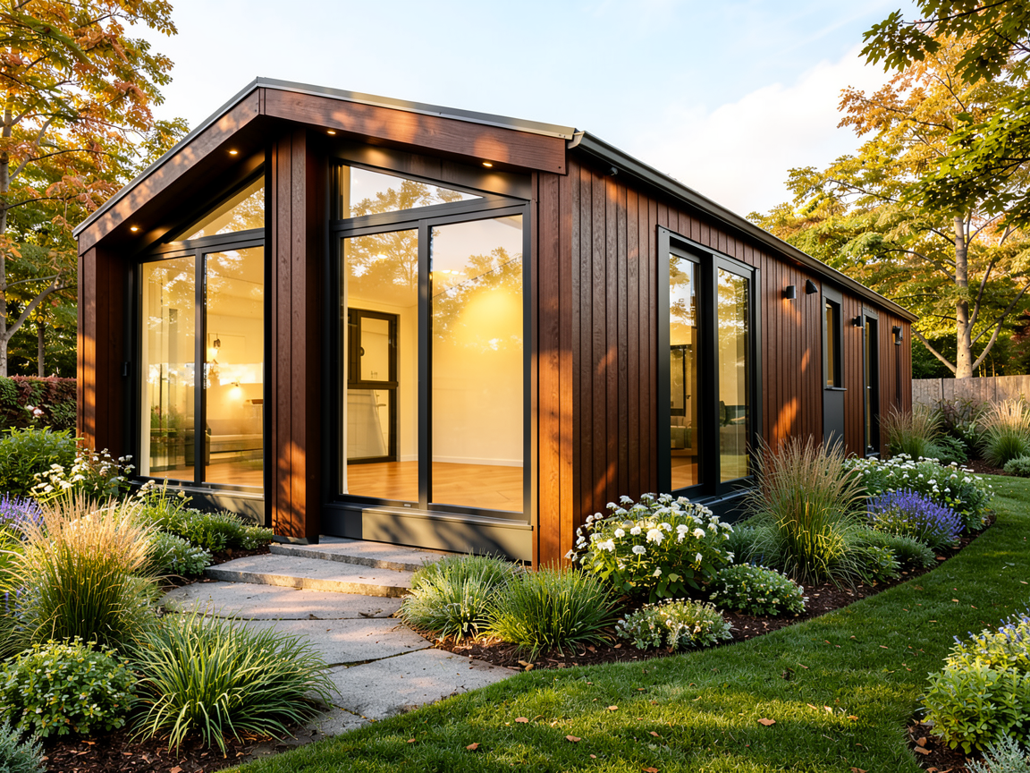 create a realistic visualization of the house viewed exclusively from the front the side of the house should not be visible at all take into account the submitted graphic of the house s structure front with side but exactly preserve the house s structure window layout and door placement front view camera positioned directly in front of the house add realistic lighting and surroundings lawn driveway trees but do not alter the house s architecture or proportions