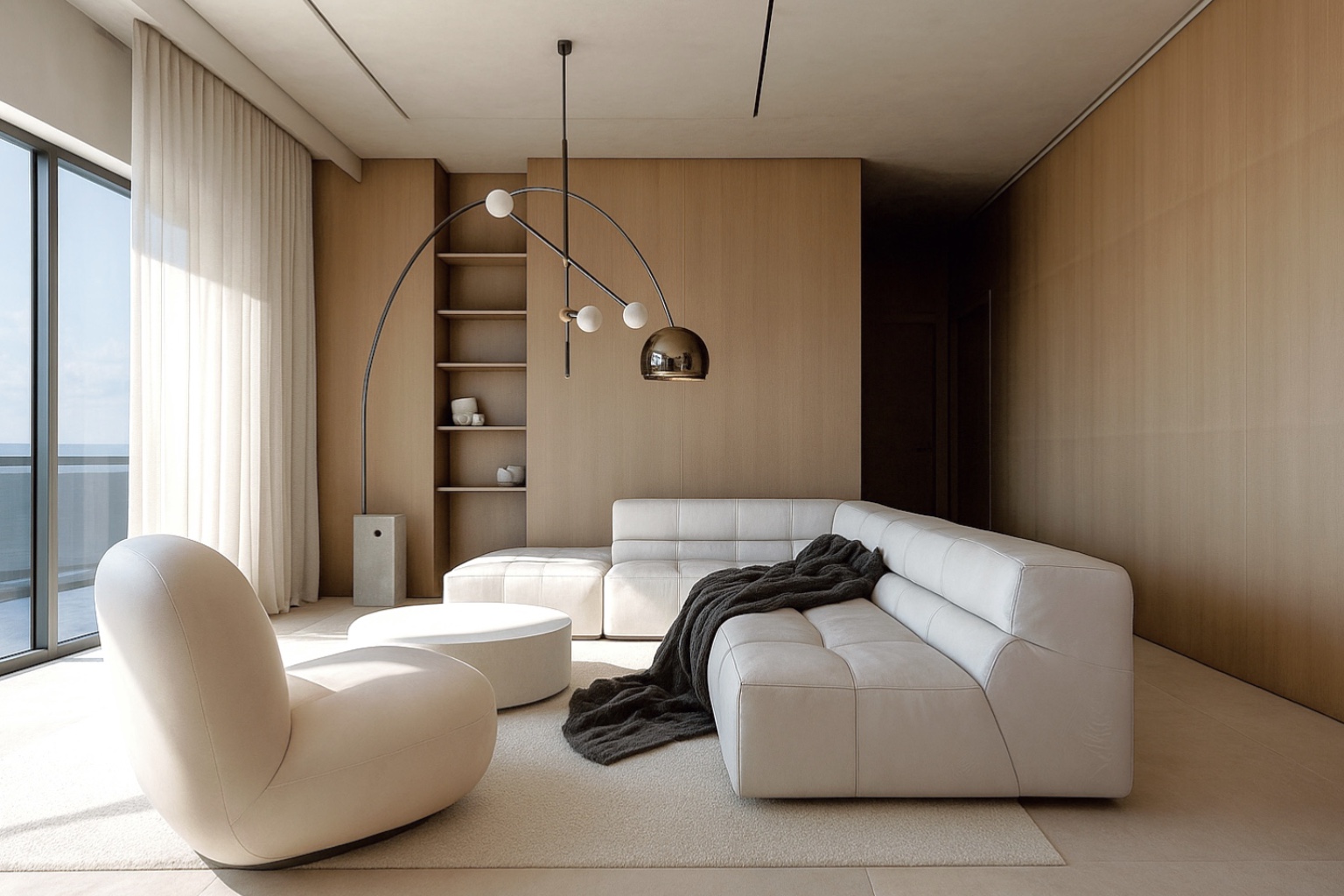 interior shot incorporate the grey element colours of the building and led perimeter lighting