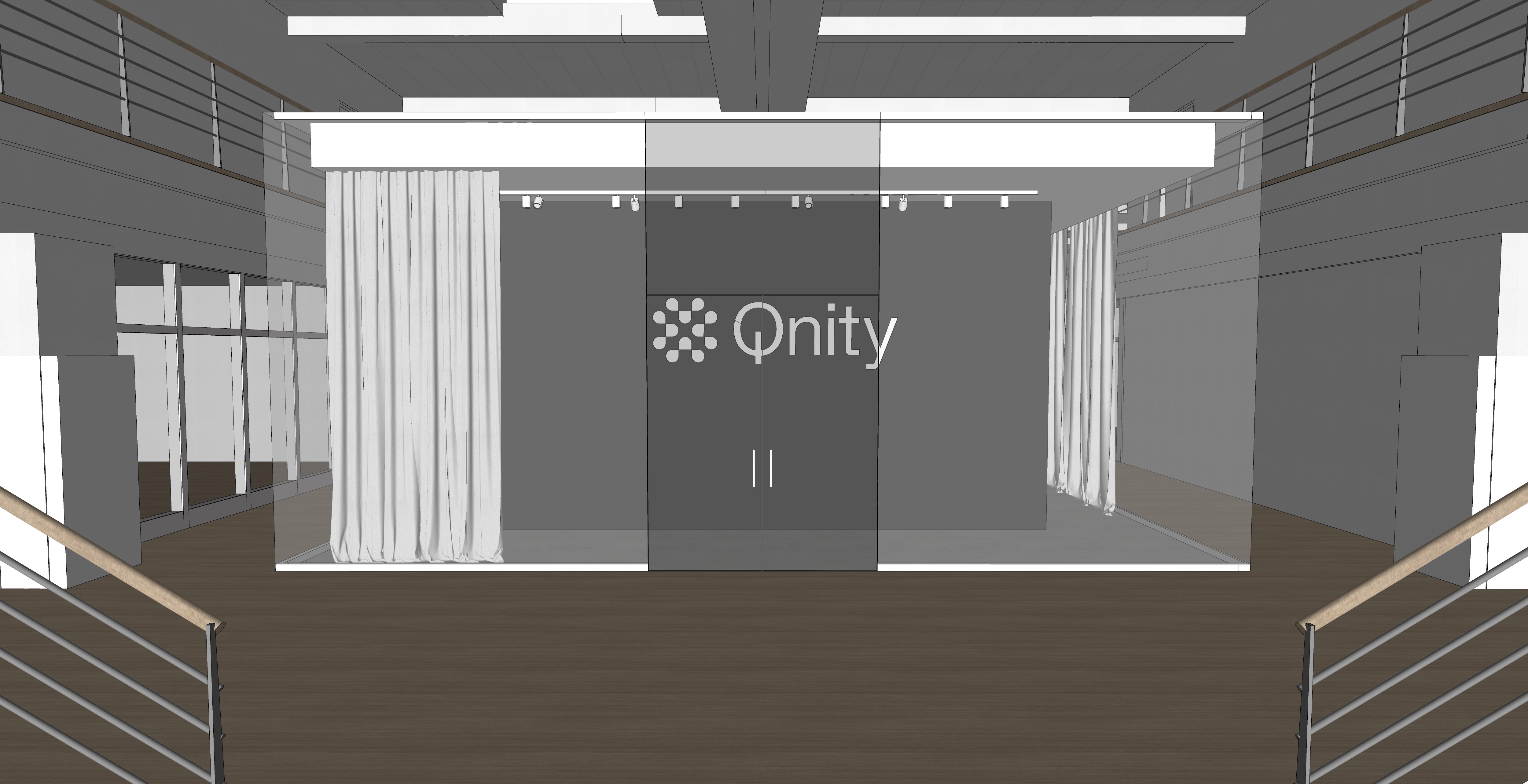 photorealistic visualizations of office spaces transparent glass walls interiors with predominantly white color floor material light wood and where there is gray color light gray carpet