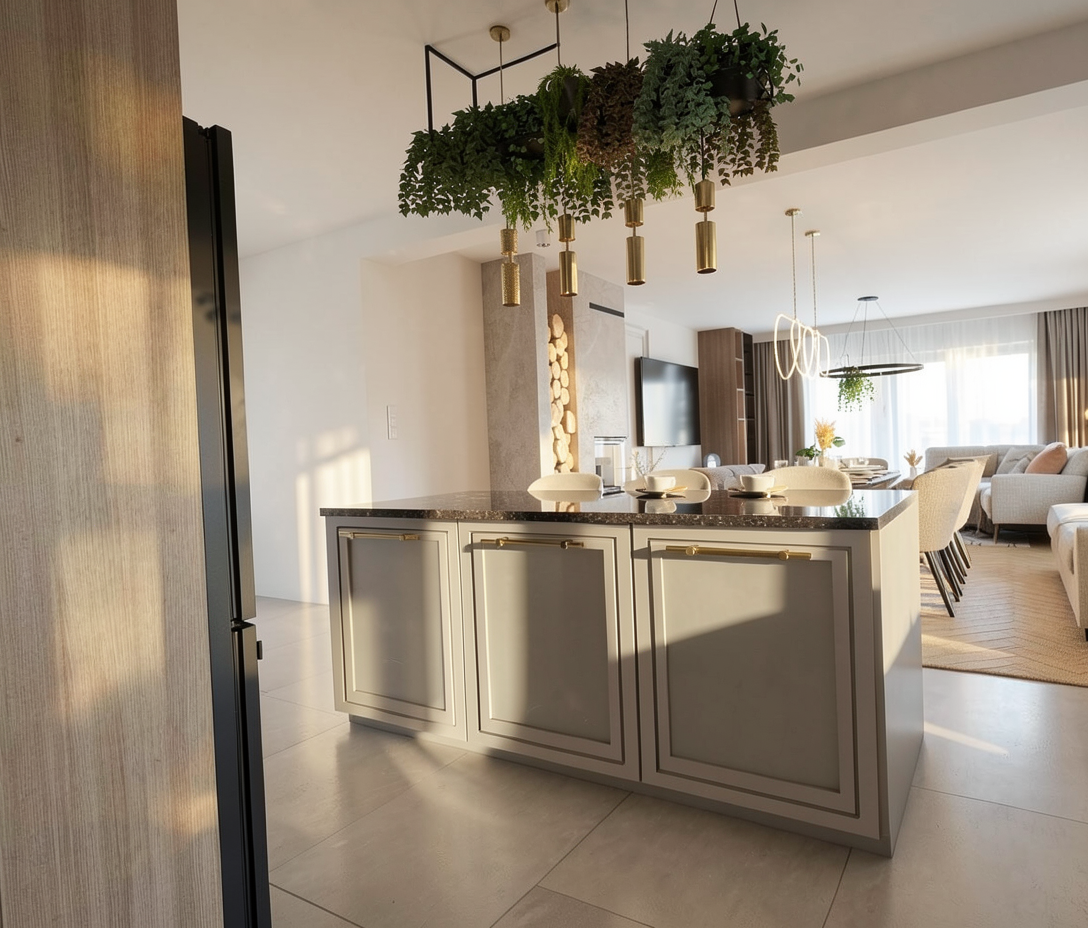 home office cabinet materials white oak books on shelves walls white floor dark blue carpet desk glass with stainless steel chair herman miller aeron recess light and under cabinet lights evening outside