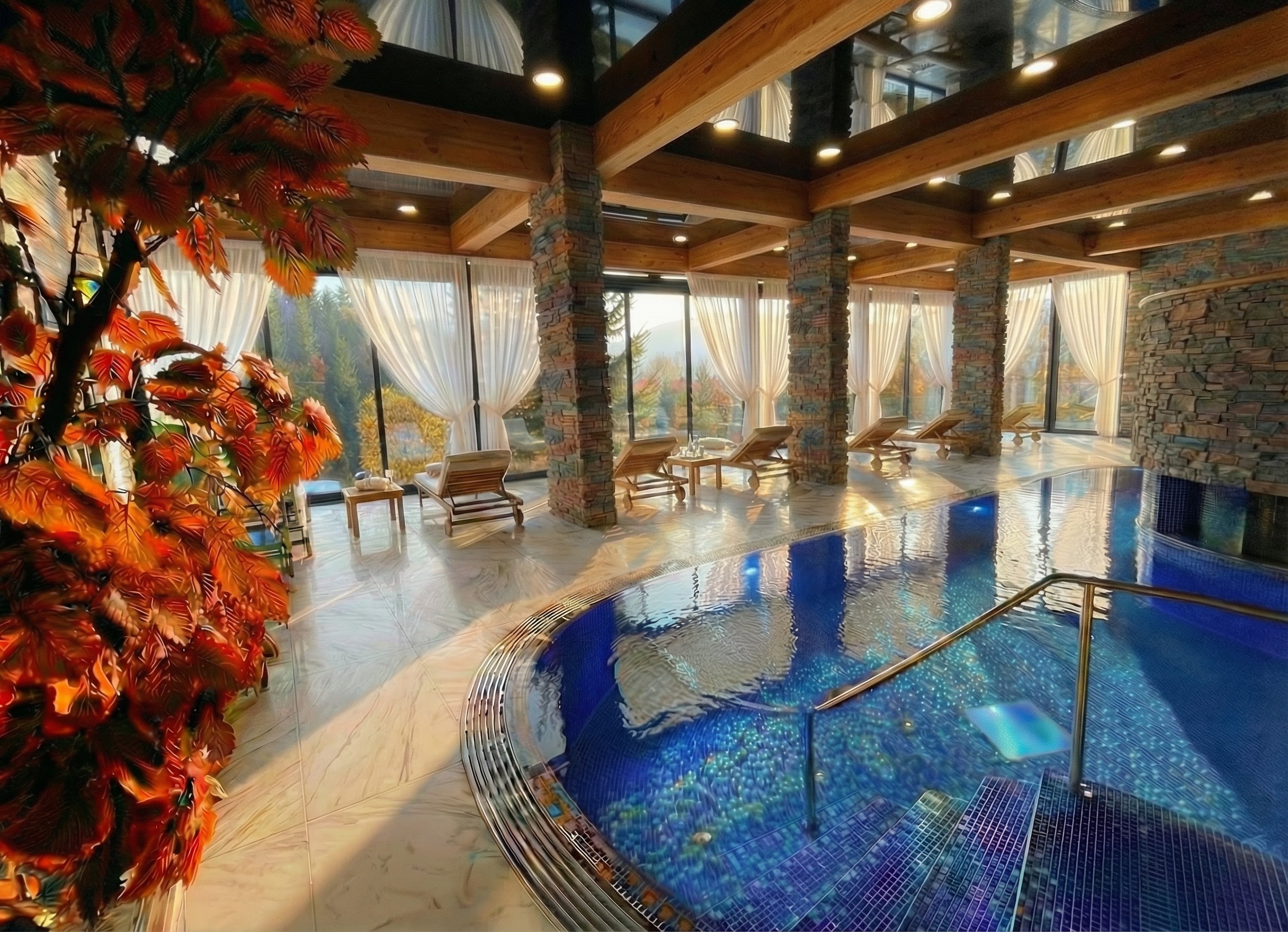 change white stone floor to pebble mosaic add lights to pool same as ceiling