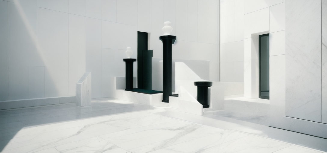 modernist exterior shot do not place this in an environment leave it how it is materials are white stone and white leather architecture