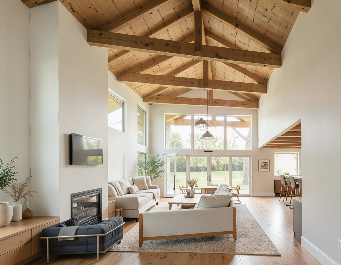 flat white panels no profile door or shaker light oak benchtop and shelves the black thing on the floor is a robot vacuum show some sunlight handles also to be wood but 320mm long and 50mm wide oval shaped on the two tall cupboards no handles on the small cupboard or drawers