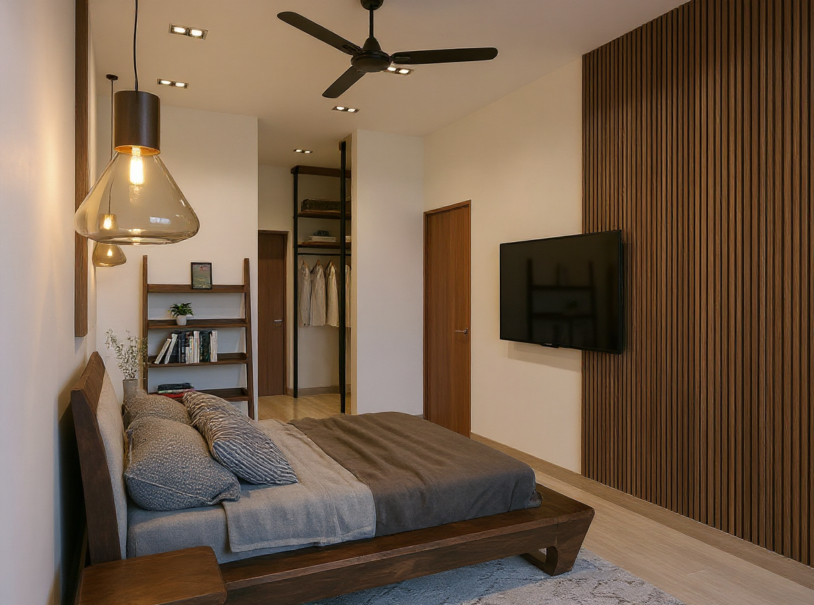 scene use the uploaded base model as geometry create a highly realistic night time exterior render in v ray corona style keep all building proportions balconies windows pool pavilion fences pergola and overall layout exactly as in the uploaded image do not change any geometry lighting night high end architectural night lighting soft warm interior lighting from the apartments 2700 3000k balcony ceilings emit warm indirect light very subtle linear lights under balconies not bright pool lighting soft blue underwater lights illuminating the water evenly landscape ground lights around plants and pathways sky clean deep blue night sky no stars no haze no harsh shadows soft global illumination materials apply realistic real world materials to match correct positions from the model 1 travertine stone all beige vertical fa ade frames must be warm beige travertine natural horizontal grain matte finish large architectural panels seamless 2 white walls all white surfaces must be clean white plaster render smooth matte finish 3 perforated metal screens place only on the three tall vertical windows on the right fa ade cover only the glass of each window top to bottom material warm grey anodized aluminum dense micro perforation matte 4 glass all balcony glass and windows should be clear architectural glass at night realistic reflections of interior light pool vegetation and exterior glow no distortion no color shift 5 wood balcony ceilings warm natural wooden slats softly lit 6 pool clear blue water with realistic underwater lighting and soft reflections landscape mediterranean trees olive ficus type realistic scale neatly trimmed shrubs along pool and fences clean organized landscaping no wild vegetation soft landscape lighting ground floor balcony pool level use realistic glass sliding doors with night reflections add subtle warm interior lighting visible through the glass optional minimal terrace furniture neutral elegant people add subtle realistic people 1 2 on the balconies 1 near the pool 1 near the building entrance people must be delicate soft colored correctly scaled integrated into night lighting style high end v ray corona photorealistic night render warm interior glow cool night ambiance clean mediterranean modern architecture restrictions do not change geometry building scale pool shape fences pergola pavilion camera angle material placement only make them realistic only upgrade materials lighting reflections landscaping and add people