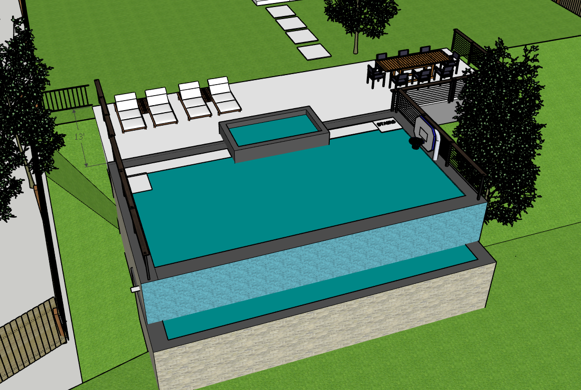 photorealistic pool with water catch basin at the bottom sunset hour