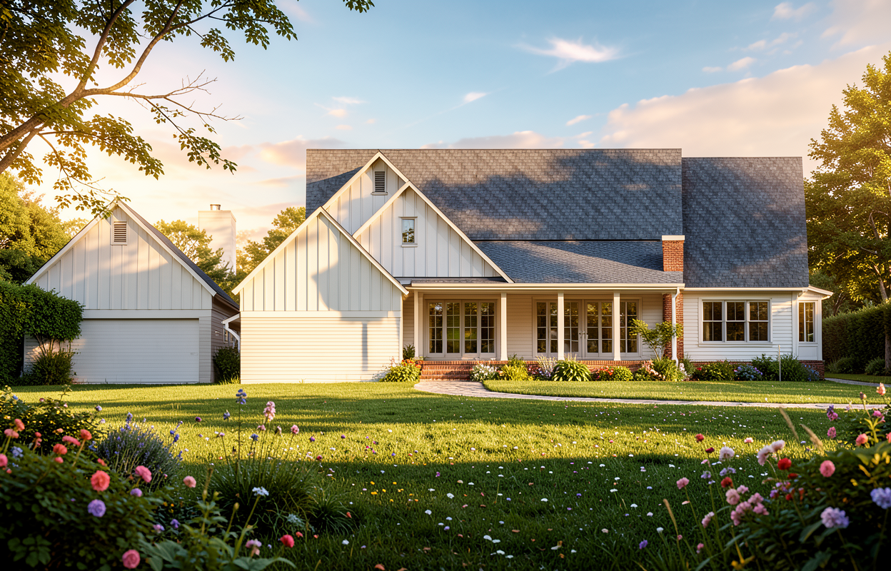 provide a photorealistic rendering with landscaping and bright day time sky with clouds
