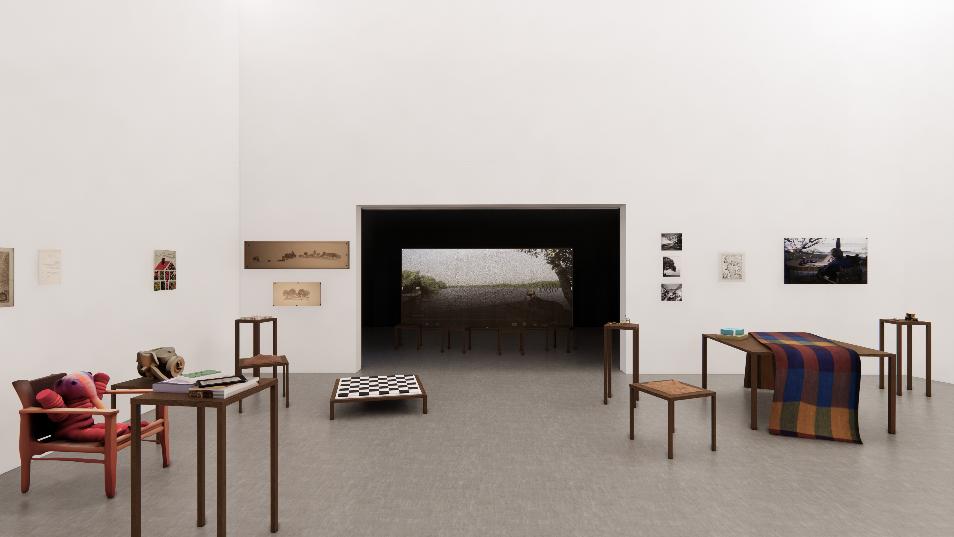 make it as a realistic picture adjust the interior light and also the materiality of the objects make them more realistic adjust the lightening don t change the furniture use a grey concrete floor
