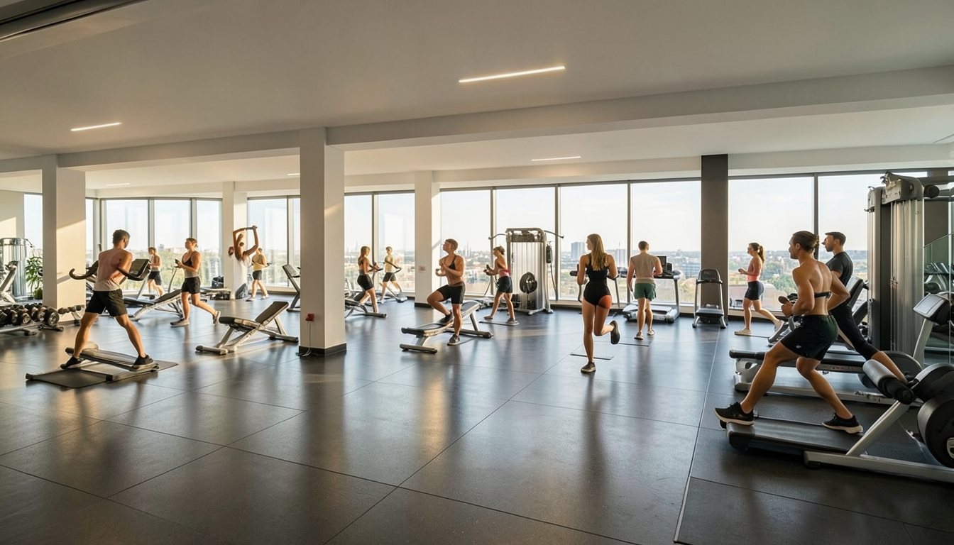 gym with people high end light and bright
