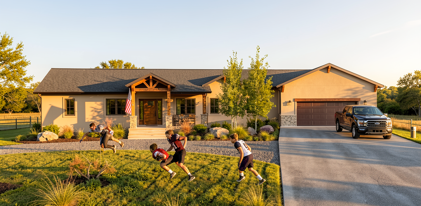 add two boys playing ball ages 6 and 8 brown hair wearing baseball hats in jeans with baseball jersey move boys by truck make smaller