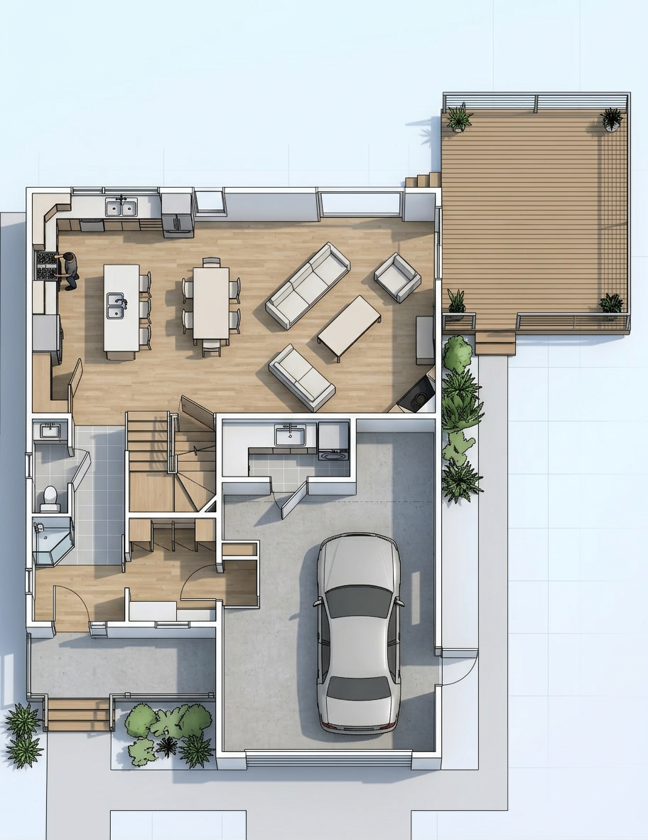 a manicured lawn layered flower beds low maintenance shrubs native plants stone pathway leading to the entrance