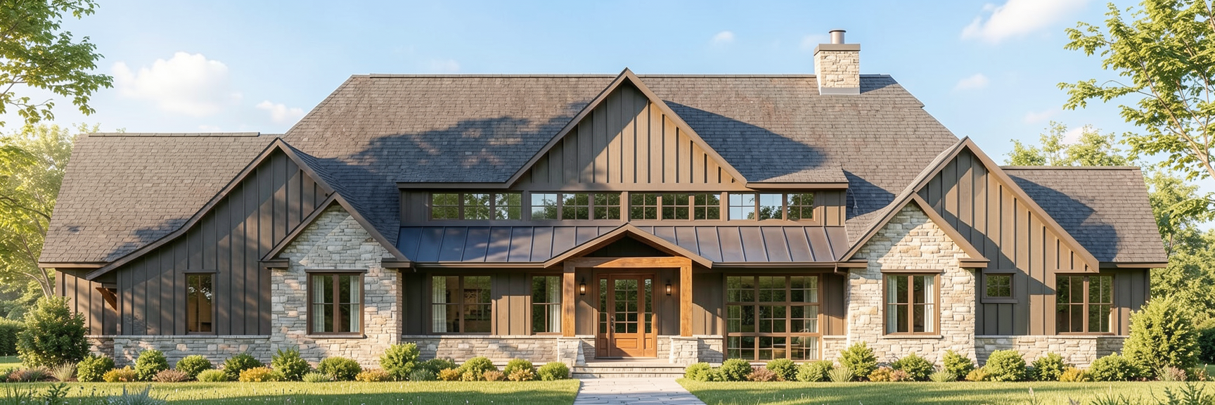 make all the board and batten siding black make the facias all black slightly darker than the board and batten siding